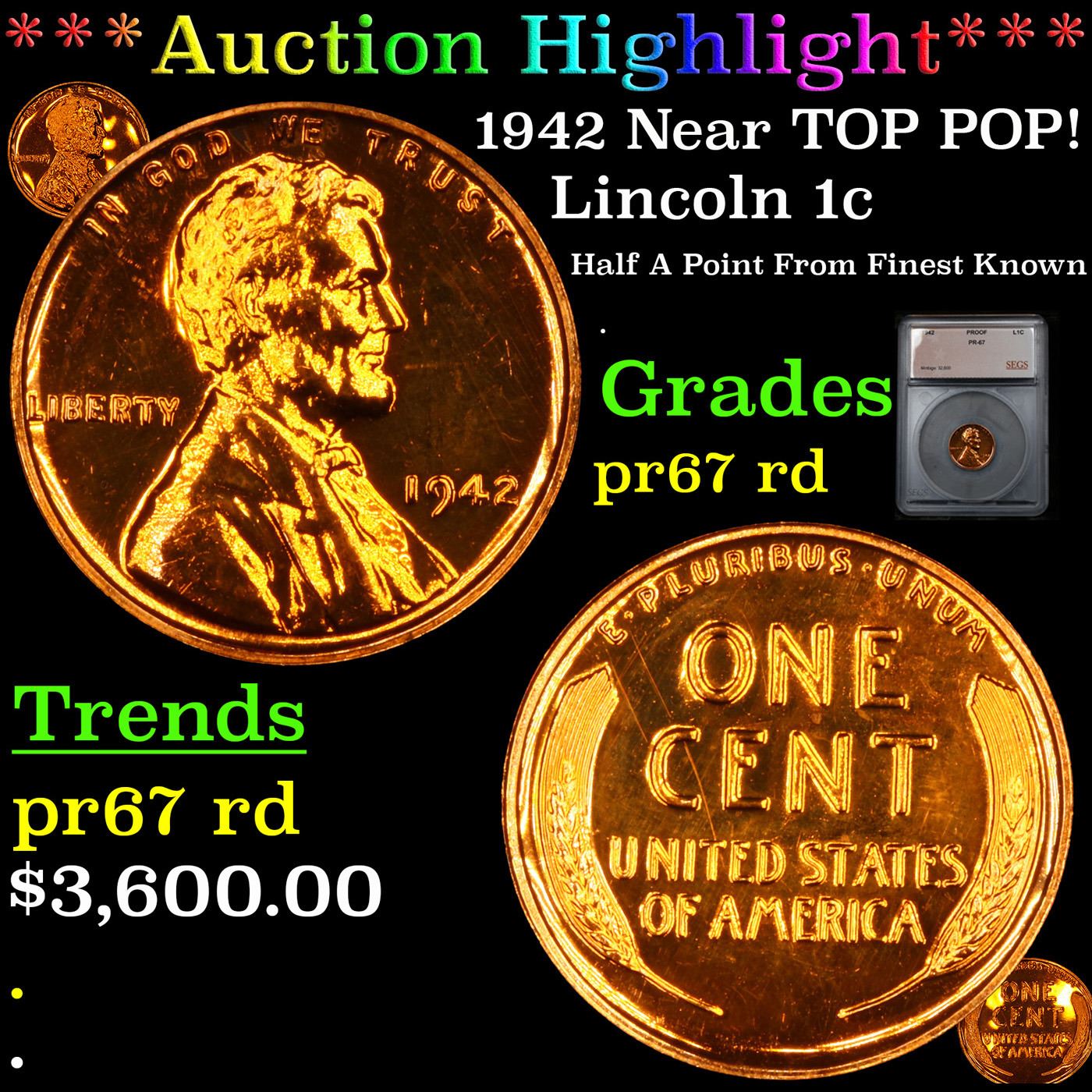 ***Auction Highlight*** 1942 Near TOP POP! Lincoln Cent 1c Graded pr67 rd BY SEGS. A Corey's Pick, Bid to Win, Don't let it get Away Coin