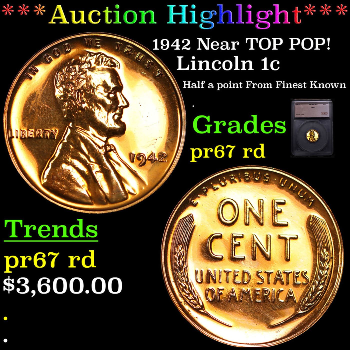 ***Auction Highlight*** 1942 Near TOP POP! Lincoln Cent 1c Graded pr67 rd By SEGS. A Corey's Pick, Bid to Win, Don't let it get Away, you might not find its equal Coin