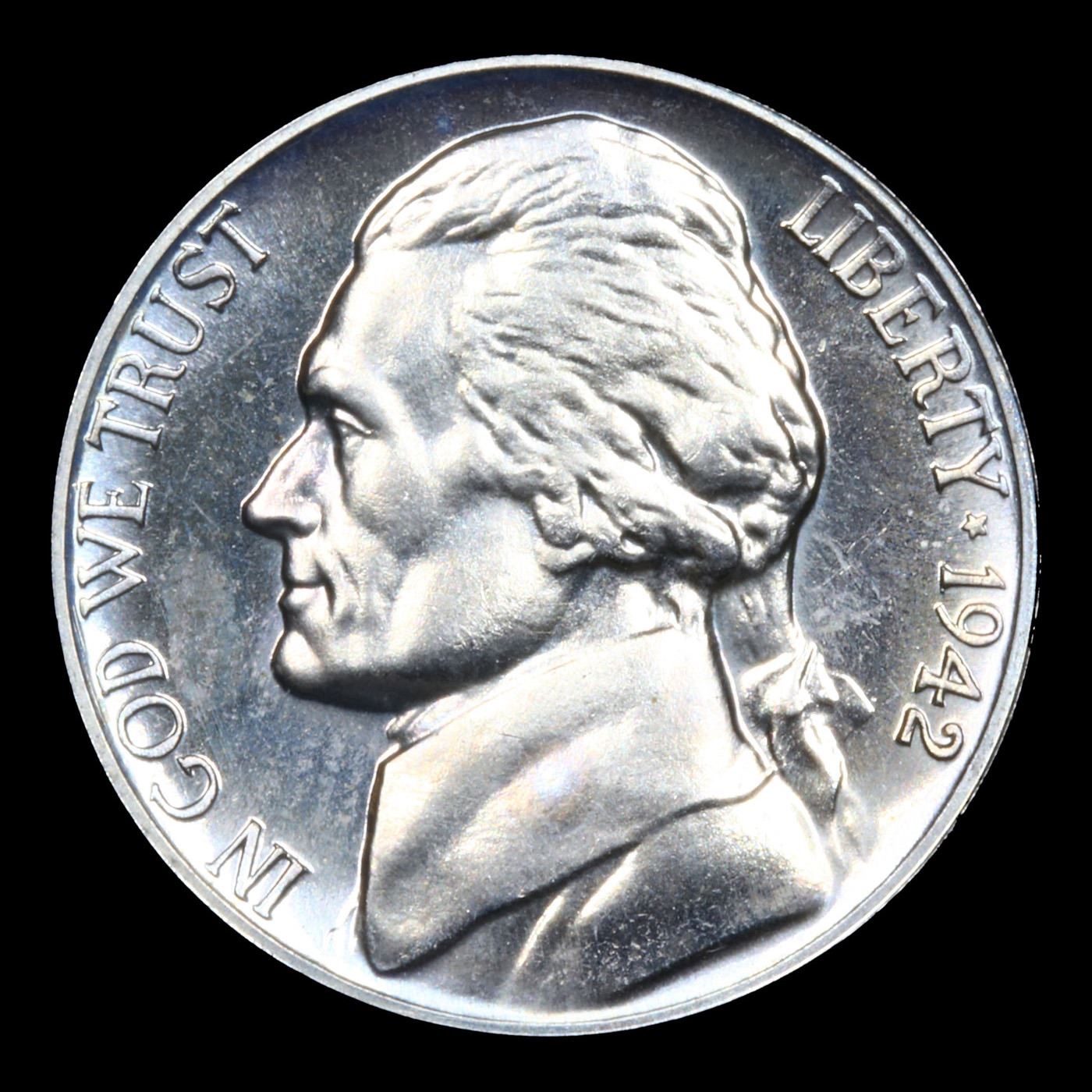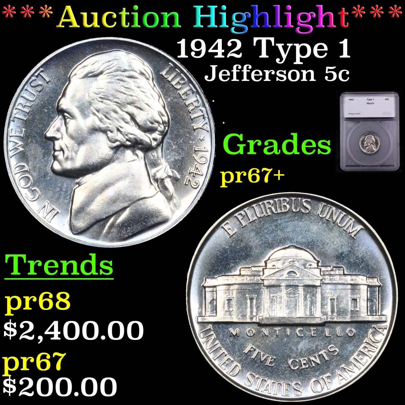 ***Auction Highlight*** 1942 Type 1 Jefferson Nickel 5c Graded pr67+ BY SEGS.