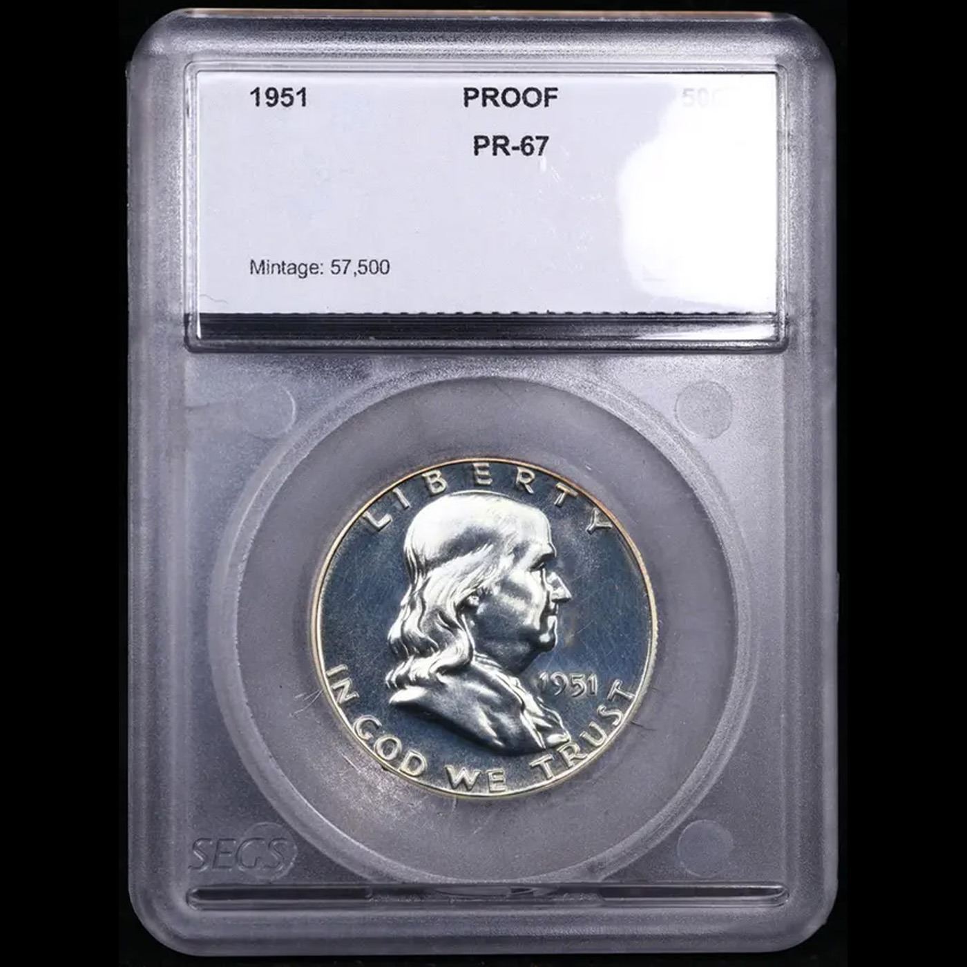 Proof ***Auction Highlight*** 1951 Franklin Half Dollar Near TOP POP! 50c Graded pr67 By SEGS (fc)