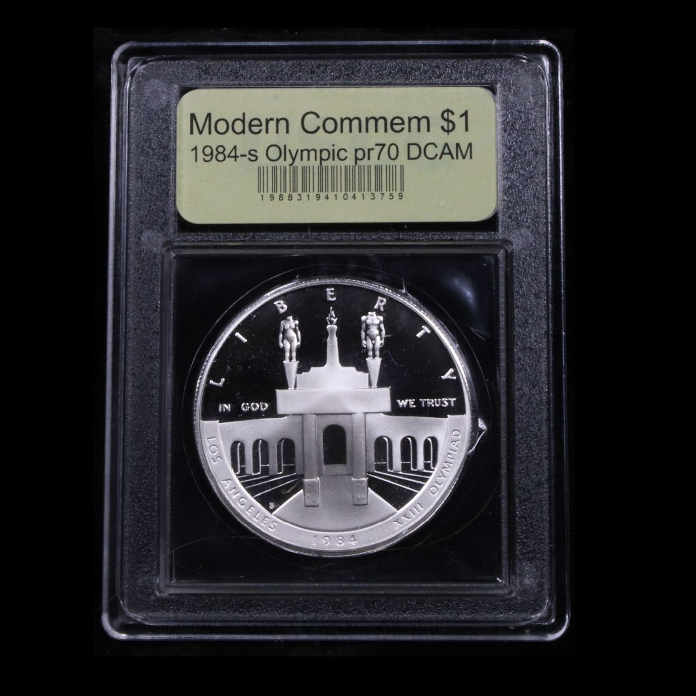 ***Auction Highlight*** 1984-S Olympic Modern Commem Dollar $1 Graded GEM++ Proof Deep Cameo By USCG. One of three coins minted to mark the 1984 Olympic games. This example is graded PR70 DCAM by USCG.