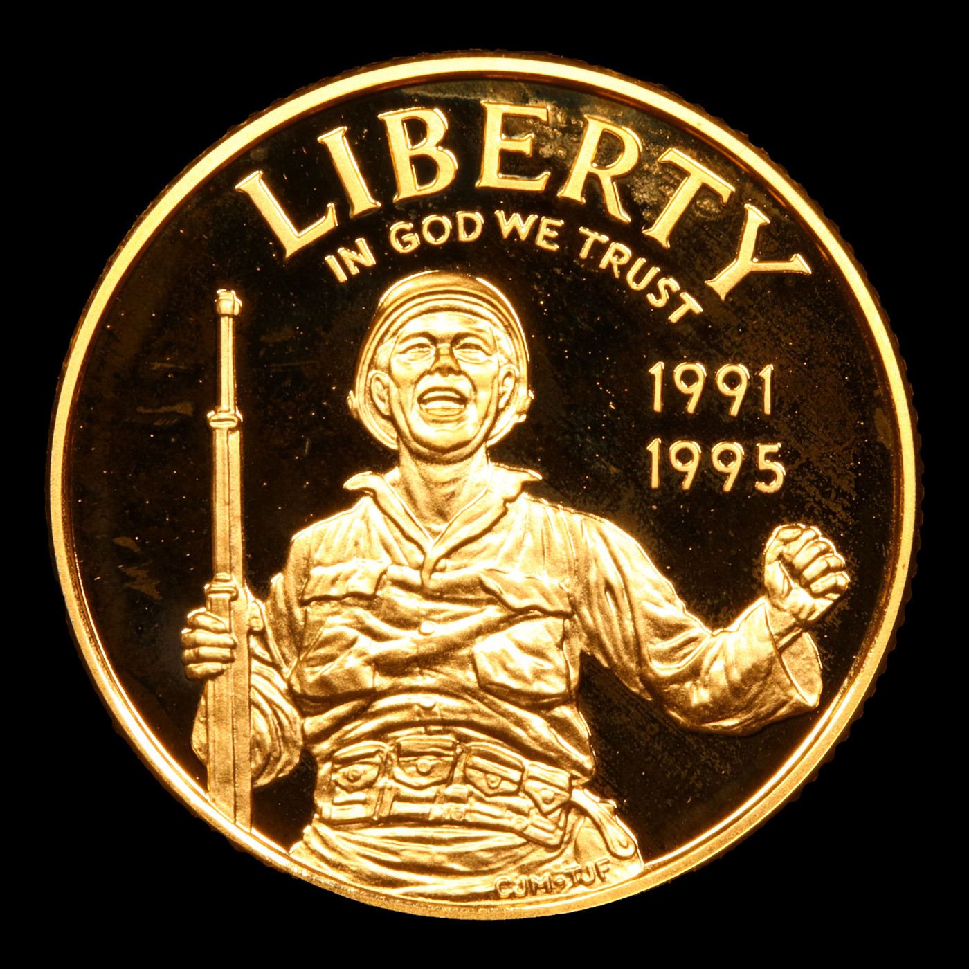 Proof ***Auction Highlight*** 1993-W WWII Gold Modern Commem $5 Graded GEM++ Proof Deep Cameo By USC