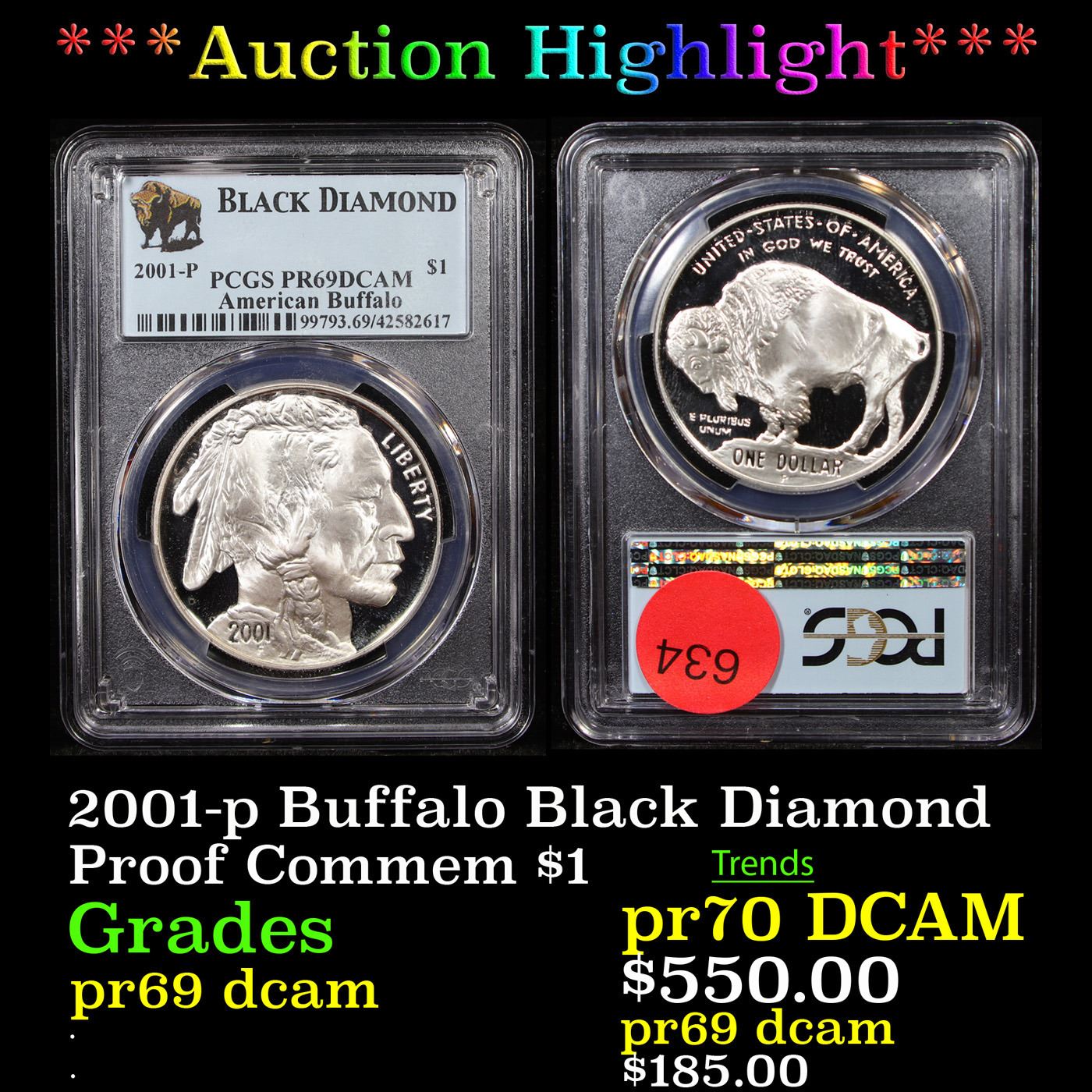 ***Auction Highlight*** 2001-p Buffalo Black Diamond Modern Commem Dollar $1 Graded pr69 dcam By PCGS. 0