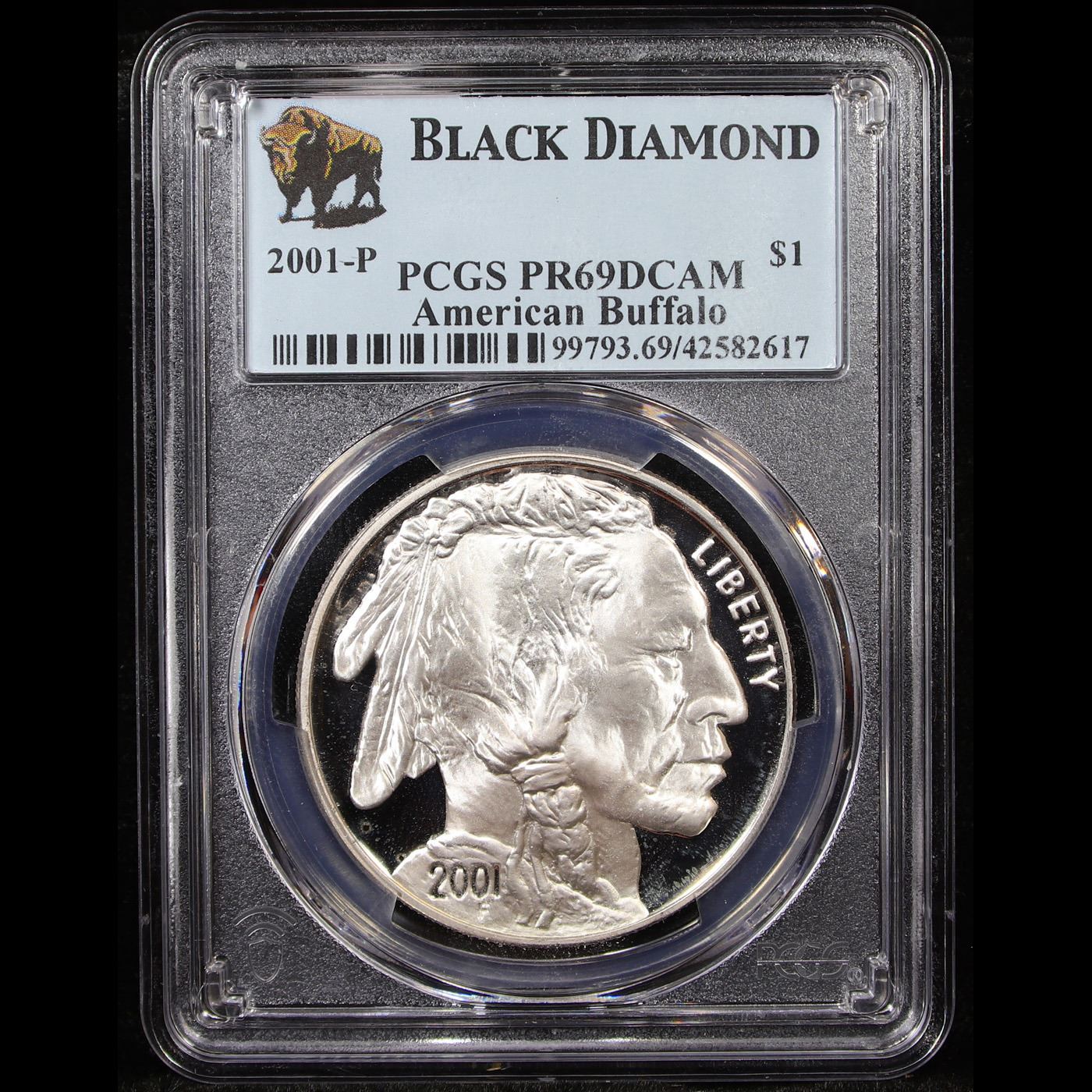 Proof ***Auction Highlight*** 2001-p Buffalo Black Diamond Modern Commem Dollar $1 Graded pr69 dcam