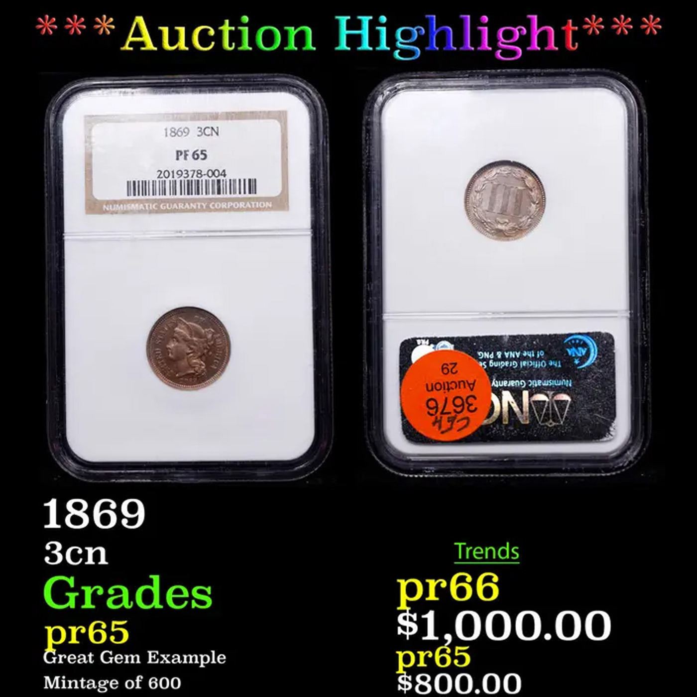 ***Auction Highlight*** NGC 1869 Three Cent Silver 3cs Graded pr65 By NGC. A Key Date's Pick, Bid to Win Coin