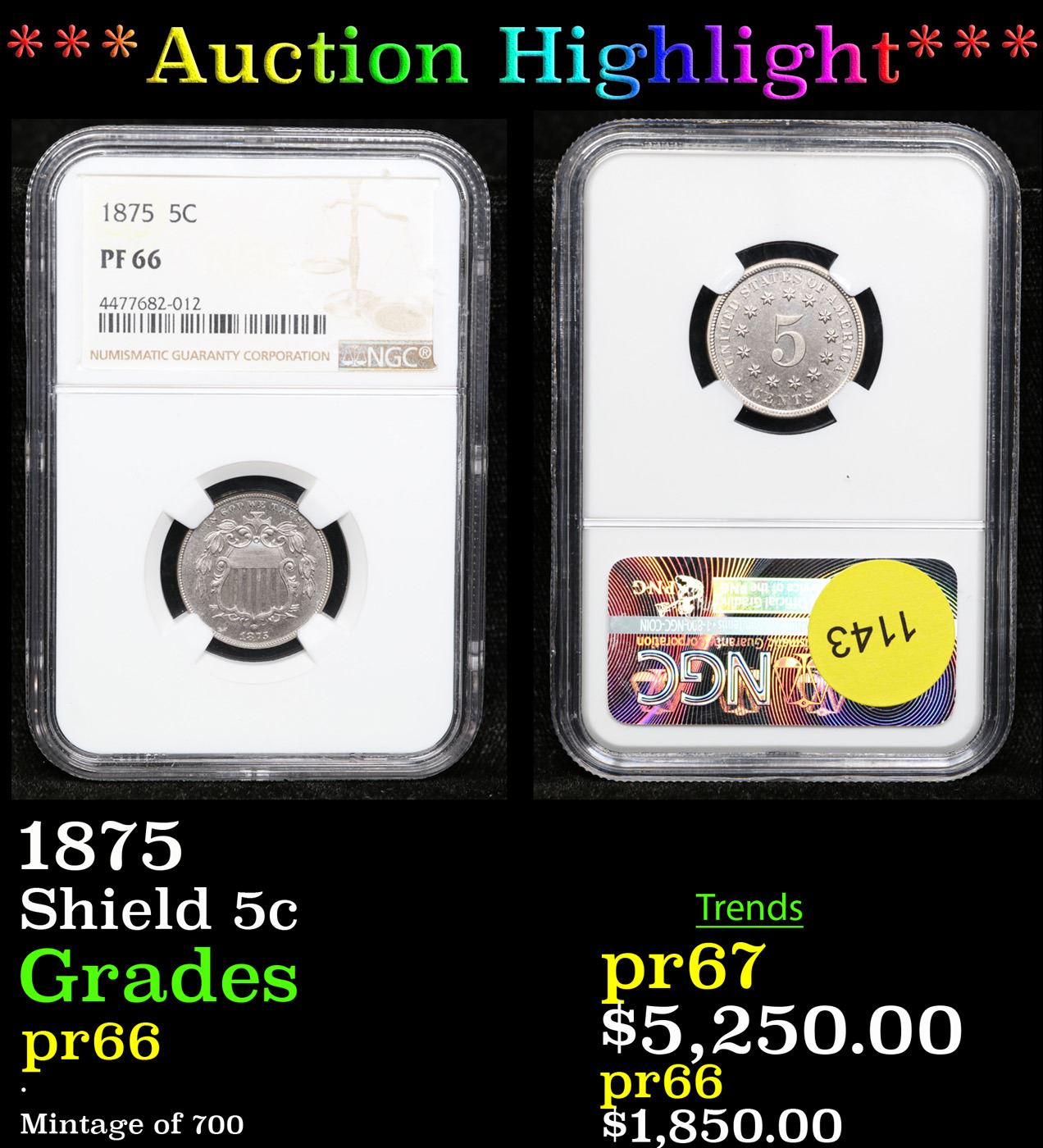 ***Auction Highlight*** NGC 1875 Shield Nickel 5c Graded pr66 By NGC.