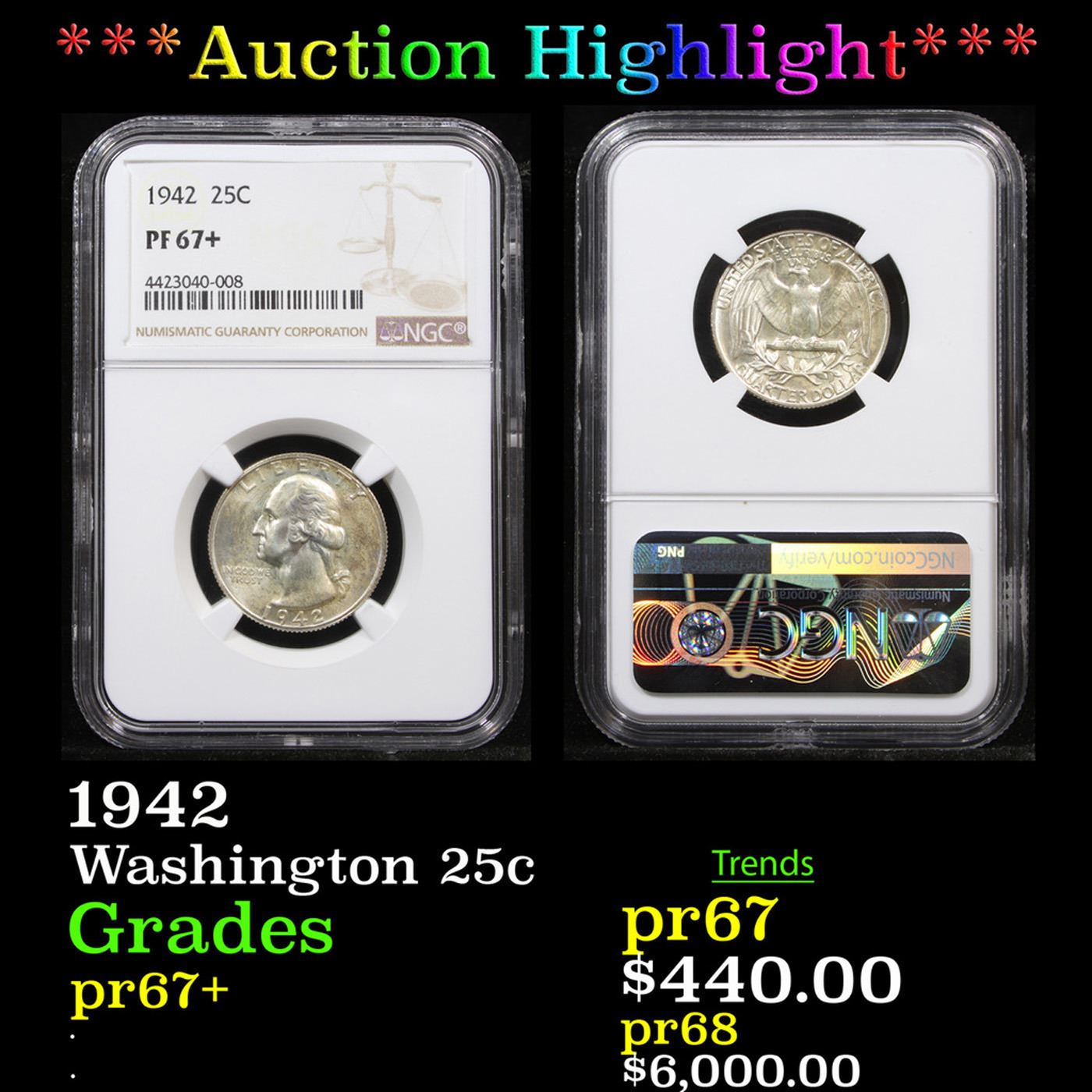 ***Auction Highlight*** NGC 1942 Washington Quarter 25c Graded pr67+ By NGC.