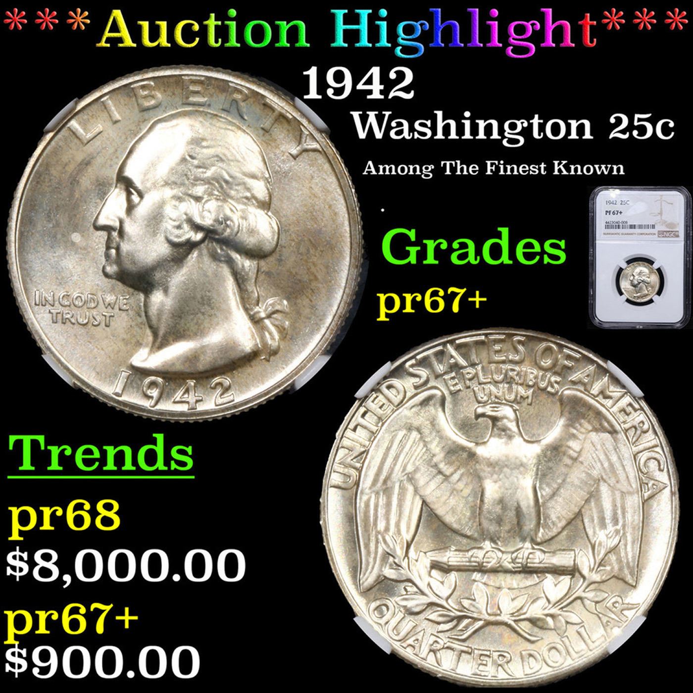 ***Auction Highlight*** NGC 1942 Washington Quarter 25c Graded pr67+ By NGC. A Corey's Pick, Bid to Win, Don't let it get Away Coin