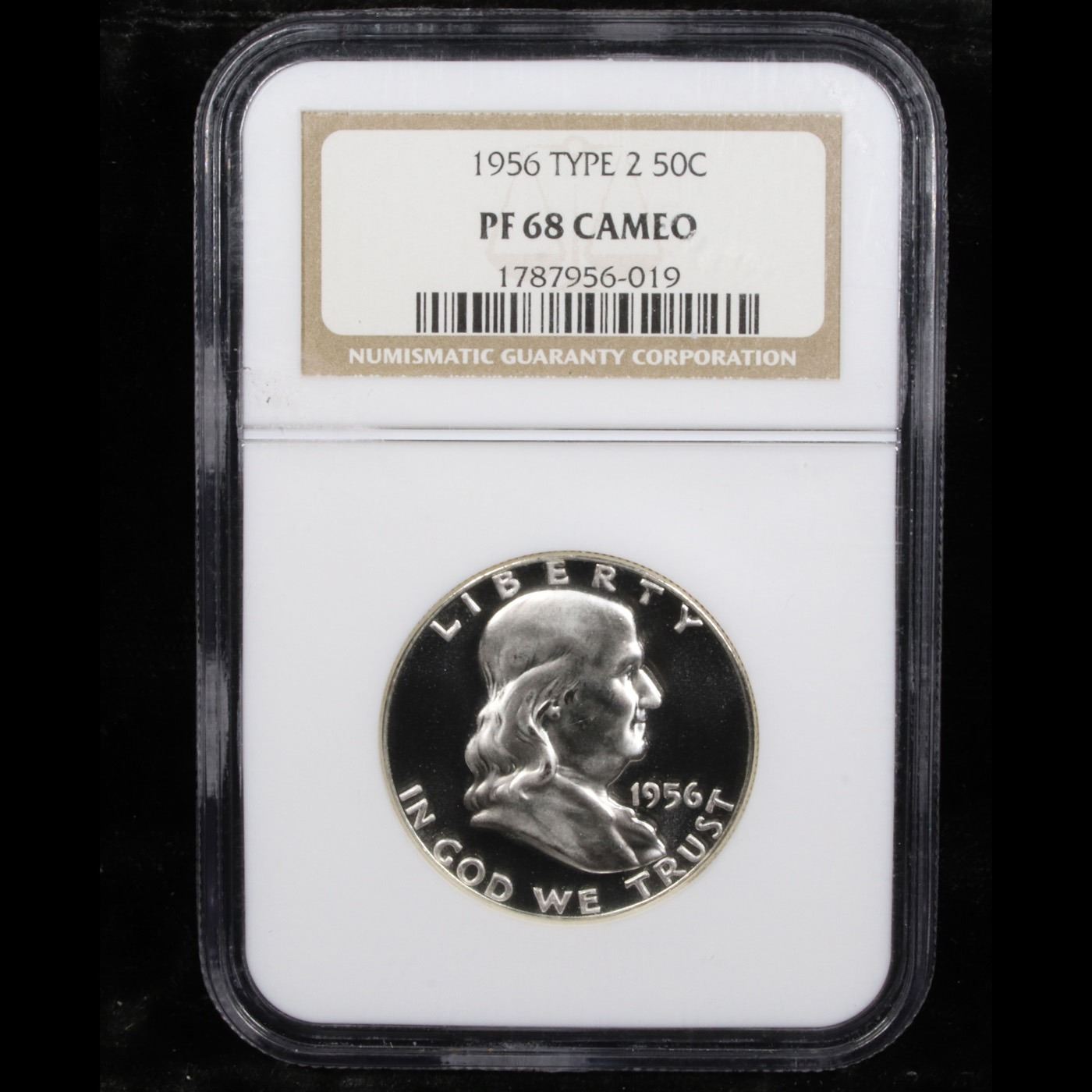 ***Auction Highlight*** NGC 1956 Type 2 Franklin Half Dollar 50c Graded pr68 cam By NGC.