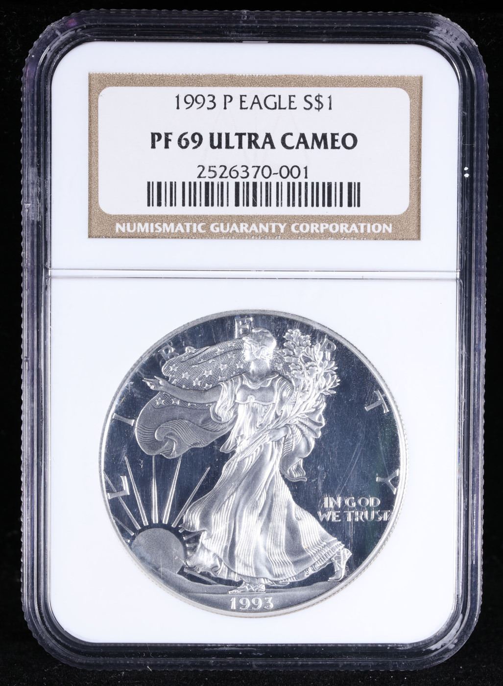 ***Auction Highlight*** NGC 1993-p Silver Eagle Dollar $1 Graded pr69 dcam By NGC.
