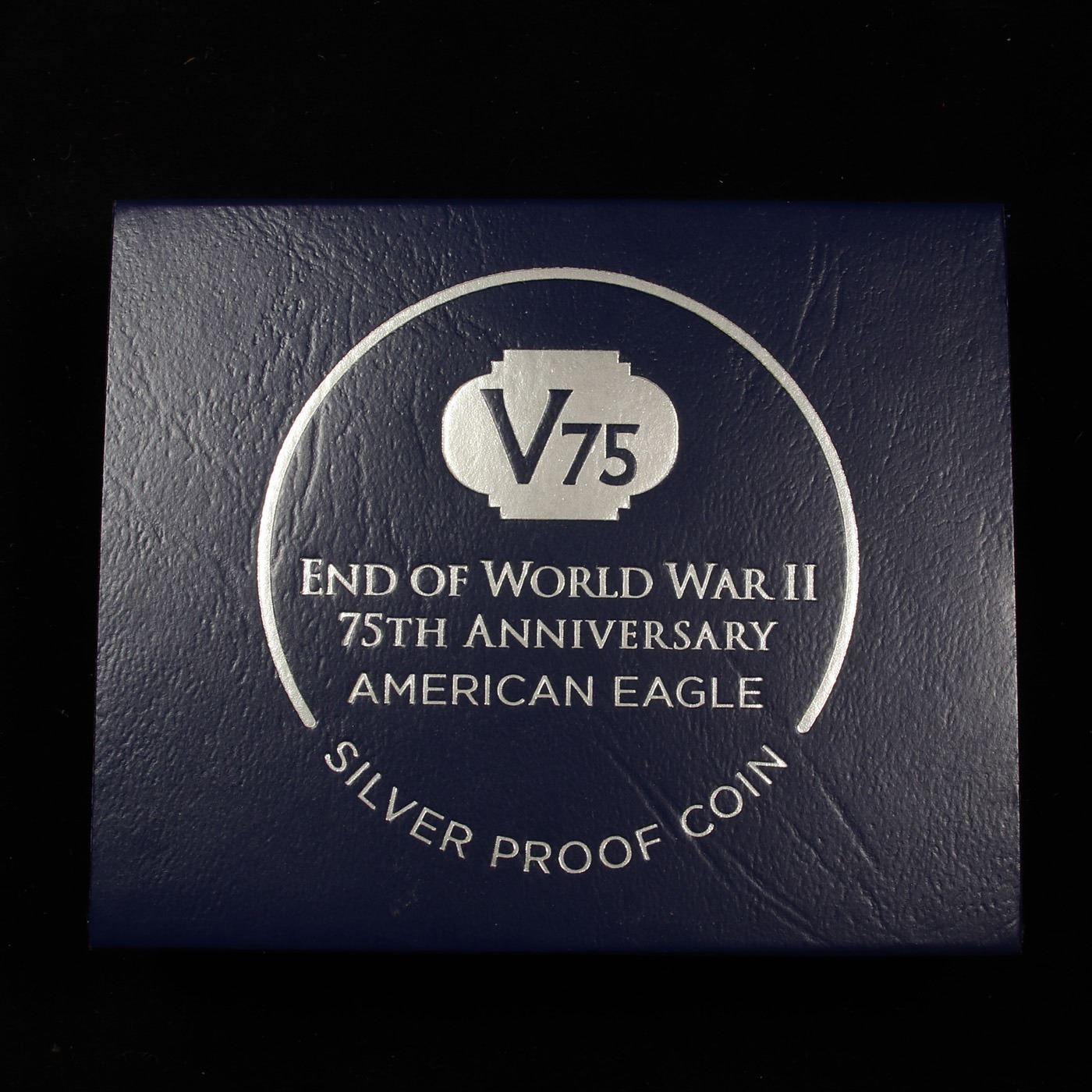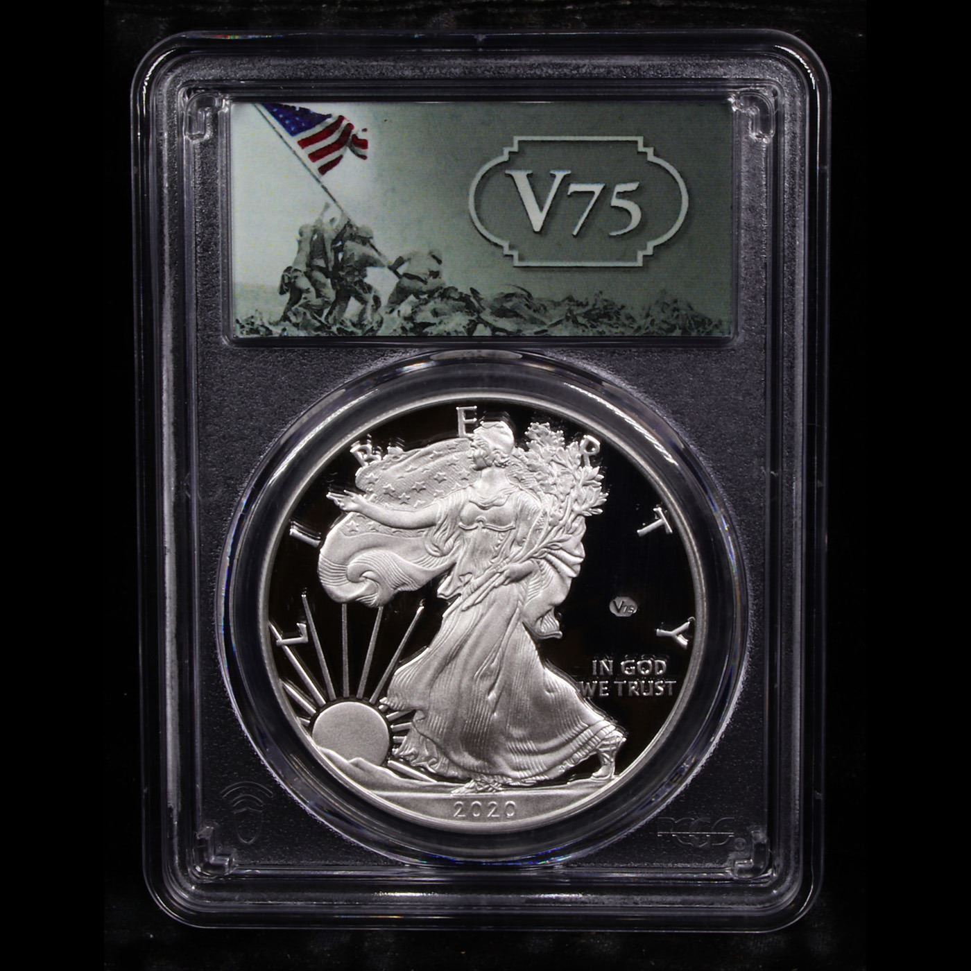 Proof ***Auction Highlight*** PCGS 2020-W $1 Silver Eagle - v75 Privy First Day of Issue WWII 75th A