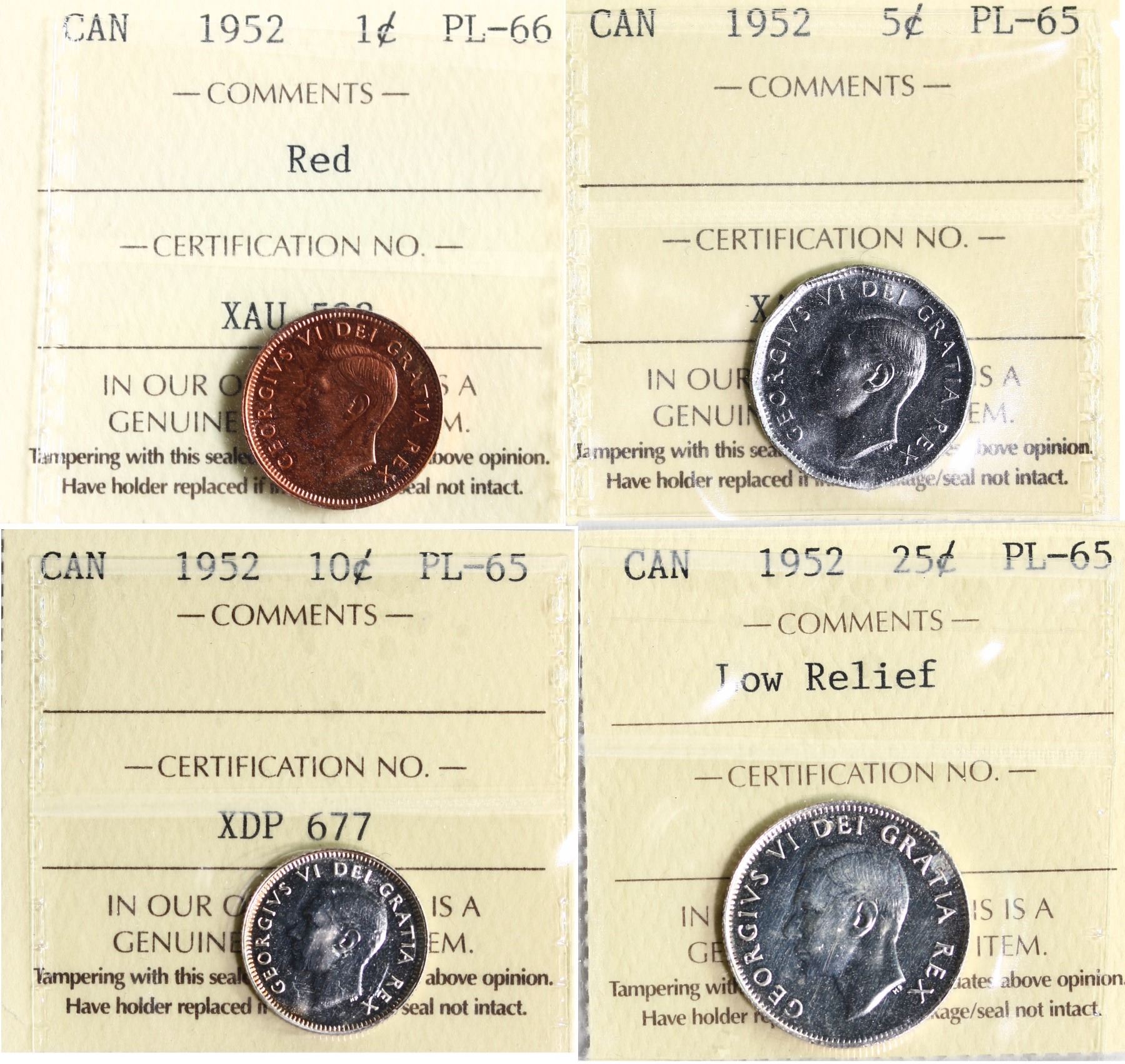 Proof-Like Set; 1952 PL Set. 1¢ is Full Red, 25¢ "LR", $1 "NWL" All 6 coins ICCS Gem Proof-Like-