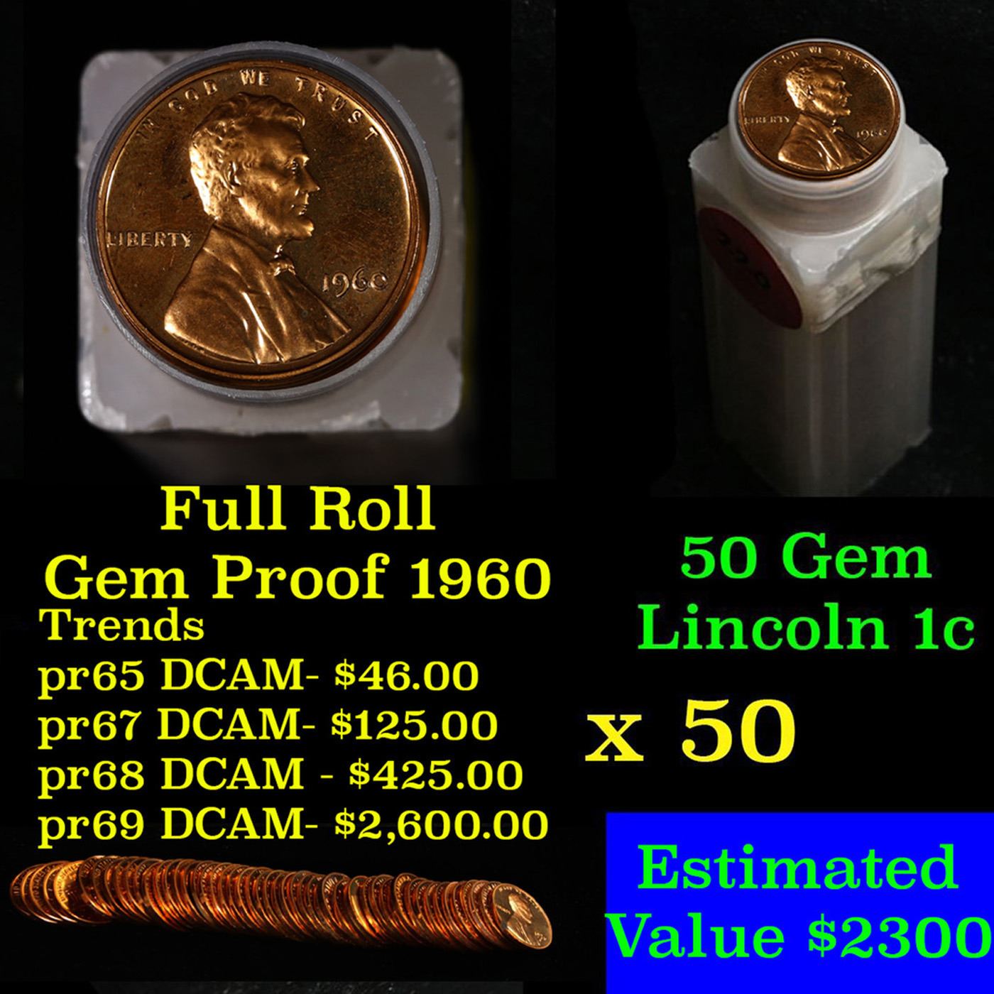 Proof Lincoln 1c roll, 1960 50 pcs