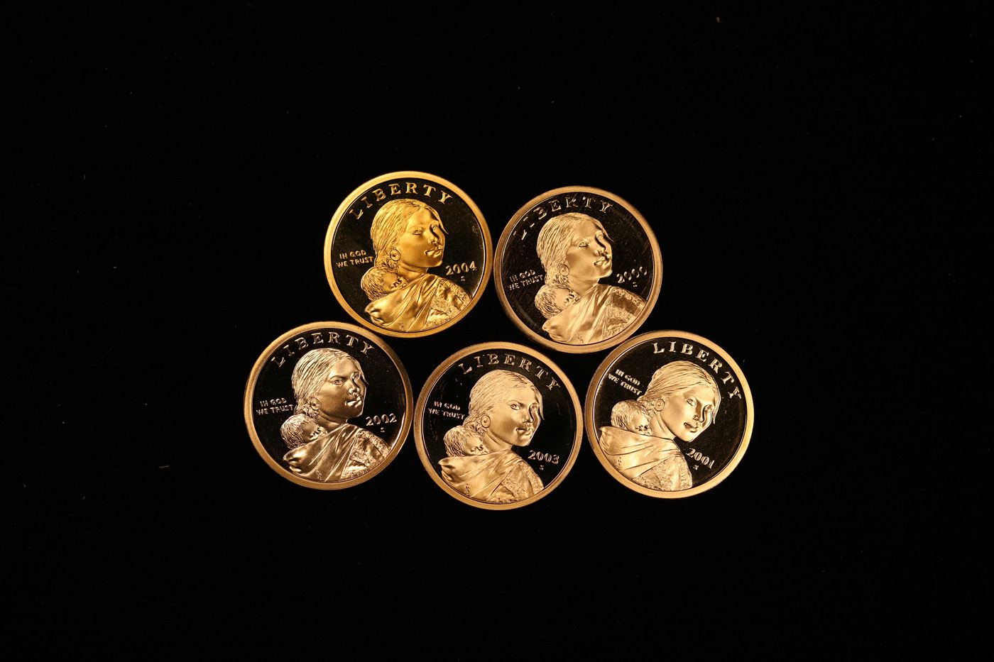 Proof Lot of 5x 2000-2004 Sacagawea Dollar Coins, Proof Grades GEM++ Proof Deep Cameo