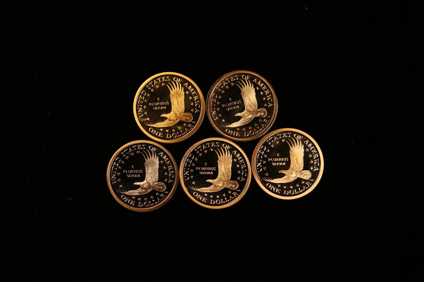 Lot of 5x 2000-2004 Sacagawea Dollar Coins, Proof Grades GEM++ Proof Deep Cameo.