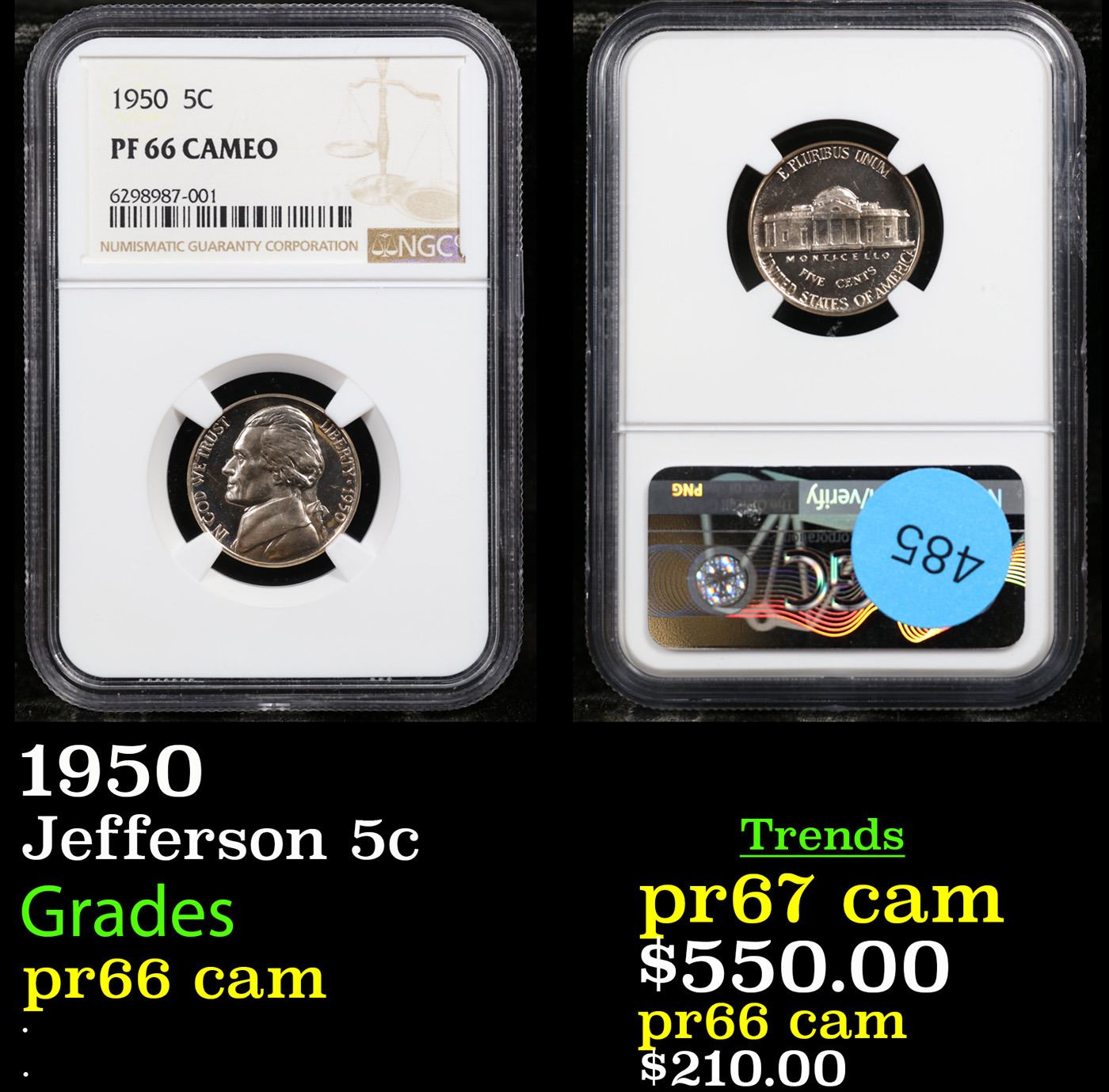 NGC 1950 Jefferson Nickel 5c Graded pr66 cam By NGC.