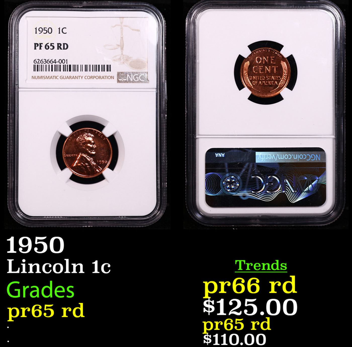 NGC 1950 Lincoln Cent 1c Graded pr65 rd By NGC.