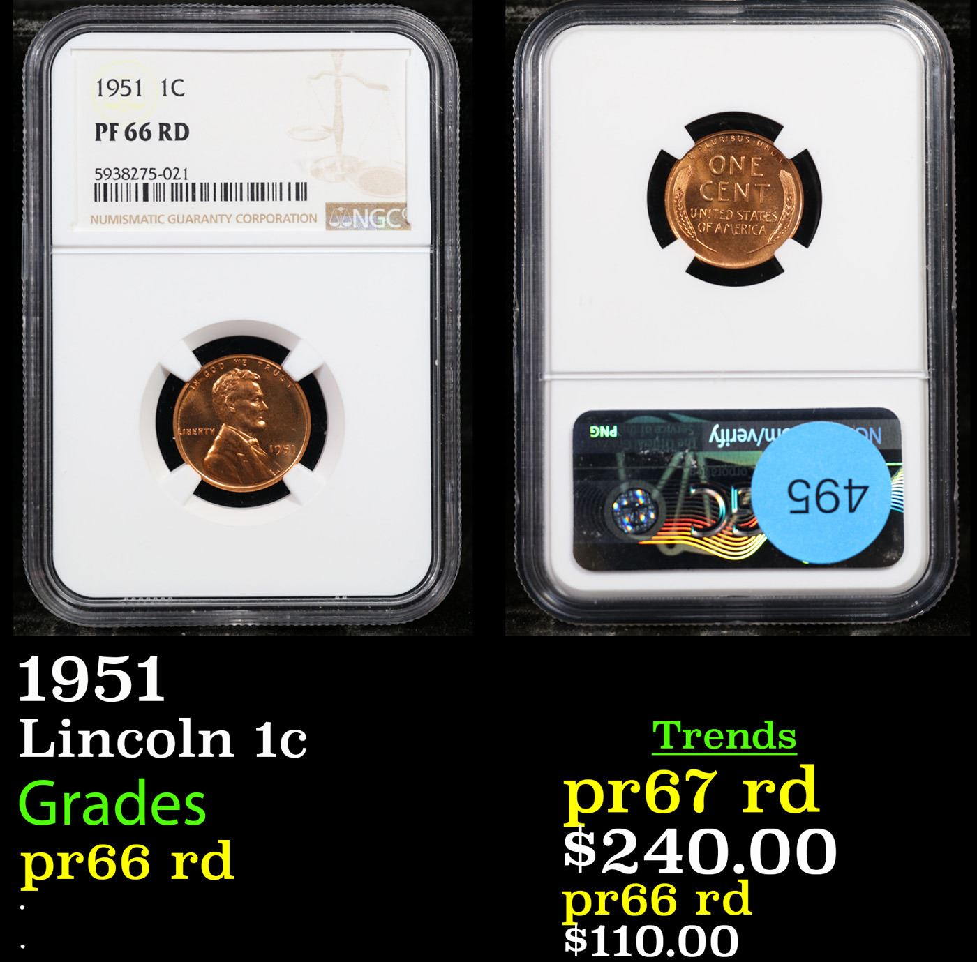 NGC 1951 Lincoln Cent 1c Graded pr66 rd By NGC.