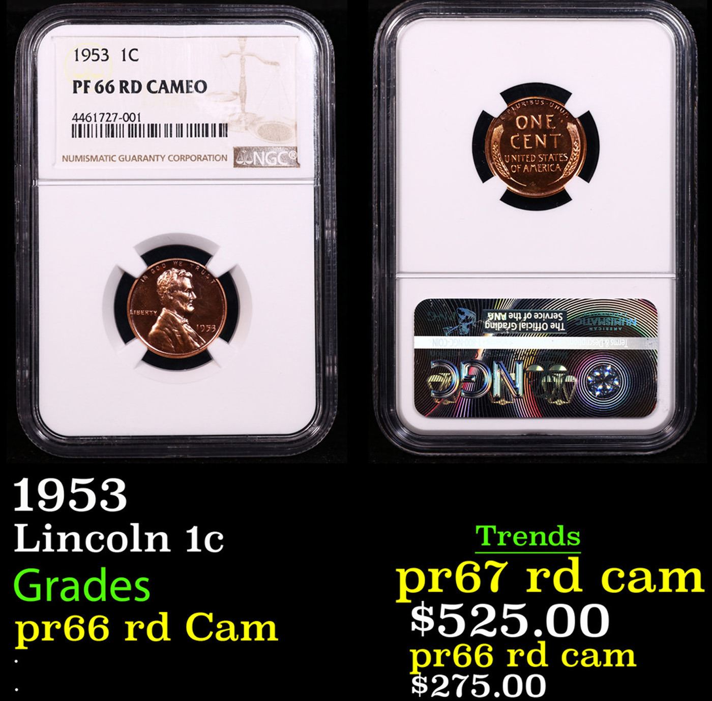 NGC 1953 Lincoln Cent 1c Graded pr66 rd Cam By NGC.