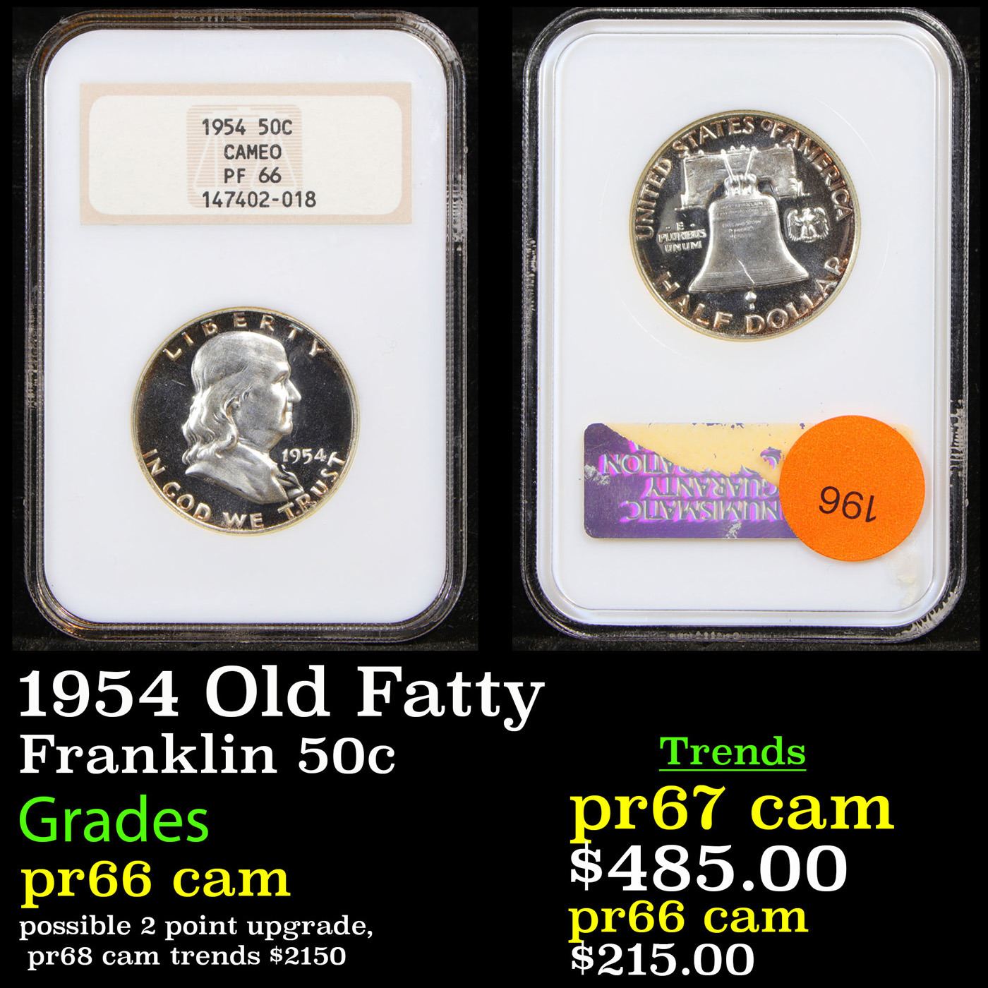 NGC 1954 Old Fatty Franklin Half Dollar 50c Graded pr66 cam by NGC.