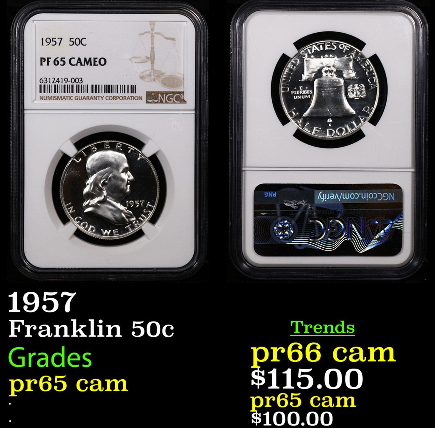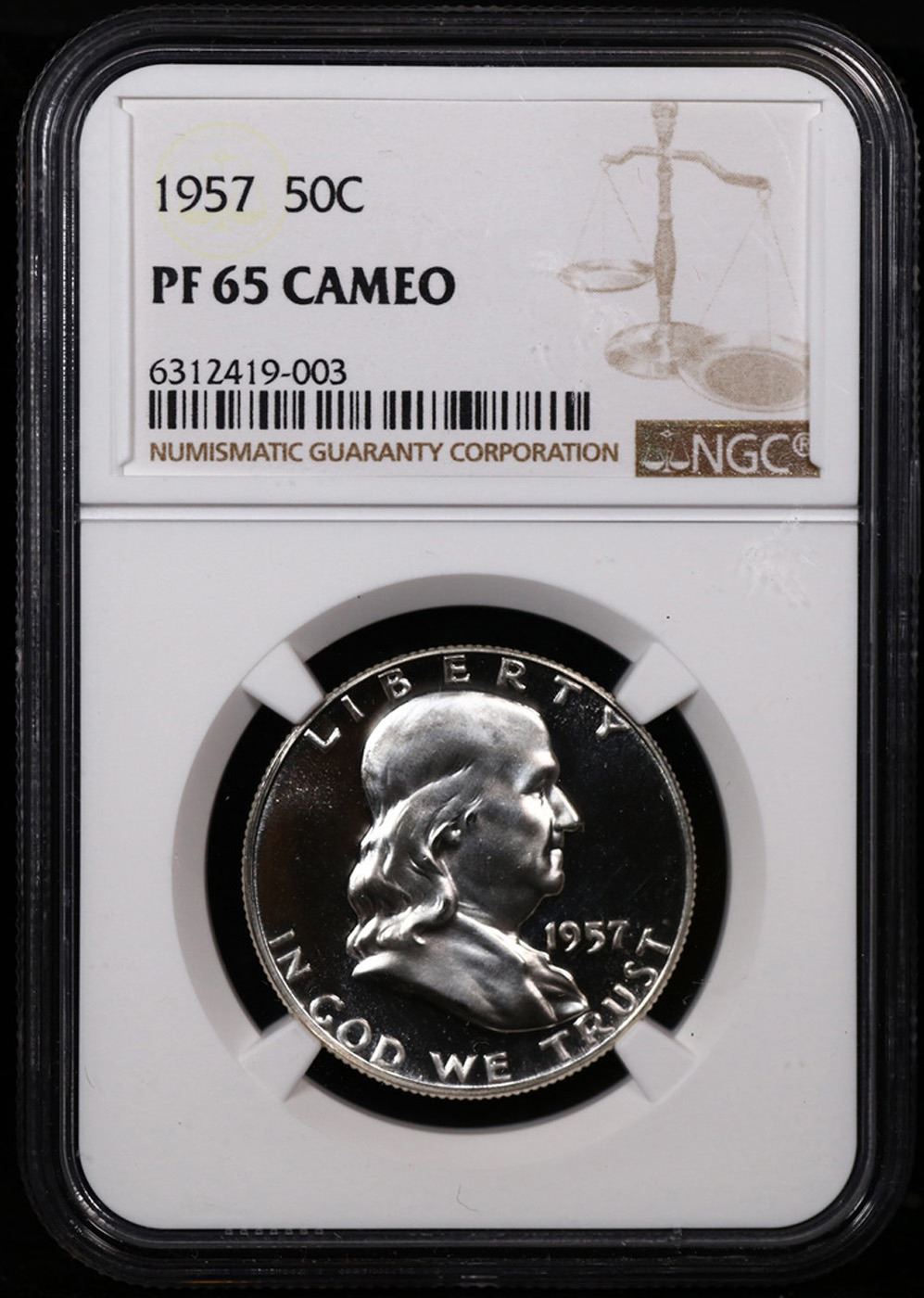 NGC 1957 Franklin Half Dollar 50c Graded pr65 cam By NGC.