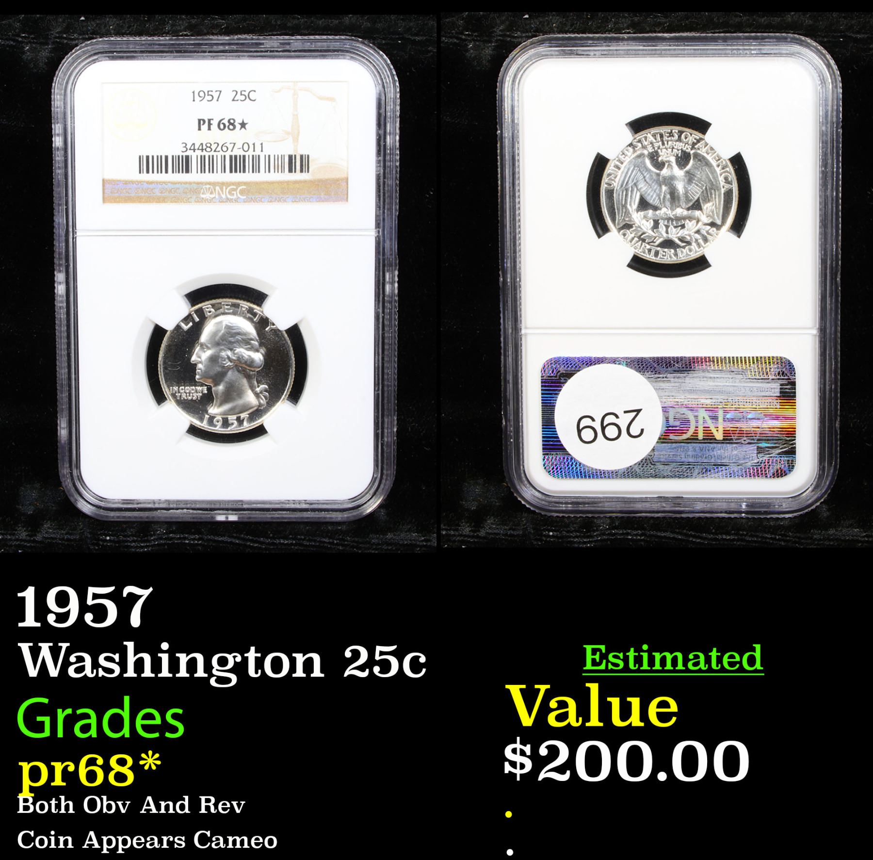 NGC 1957 Washington Quarter 25c Graded pr68* By NGC.