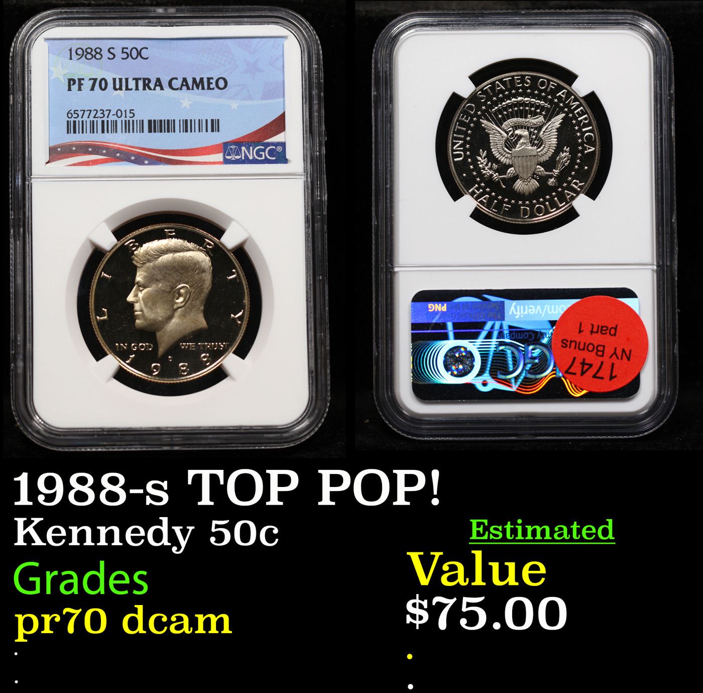 NGC 1988-s TOP POP! Kennedy Half Dollar 50c Graded pr70 dcam By NGC.
