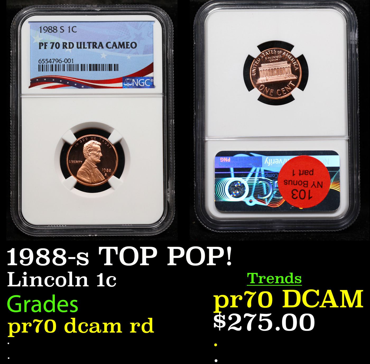 NGC 1988-s TOP POP! Lincoln Cent 1c Graded pr70 dcam rd By NGC.