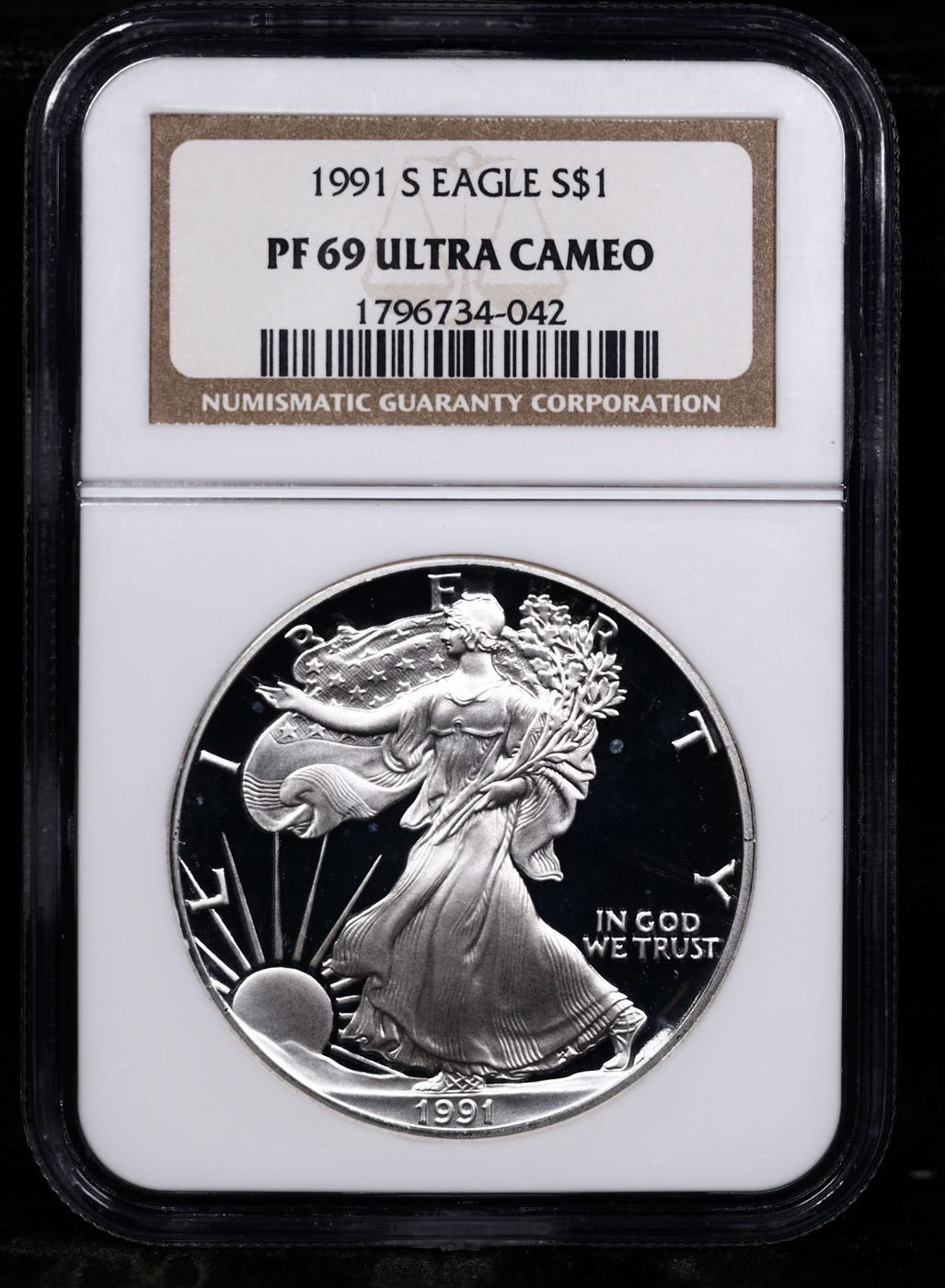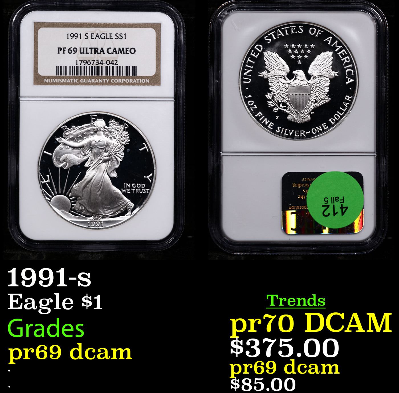 NGC 1991-s Silver Eagle Dollar $1 Graded pr69 dcam By NGC.