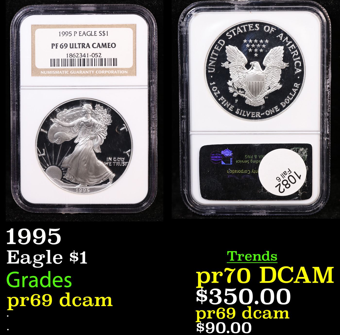 NGC 1995 Silver Eagle Dollar $1 Graded pr69 dcam By NGC.