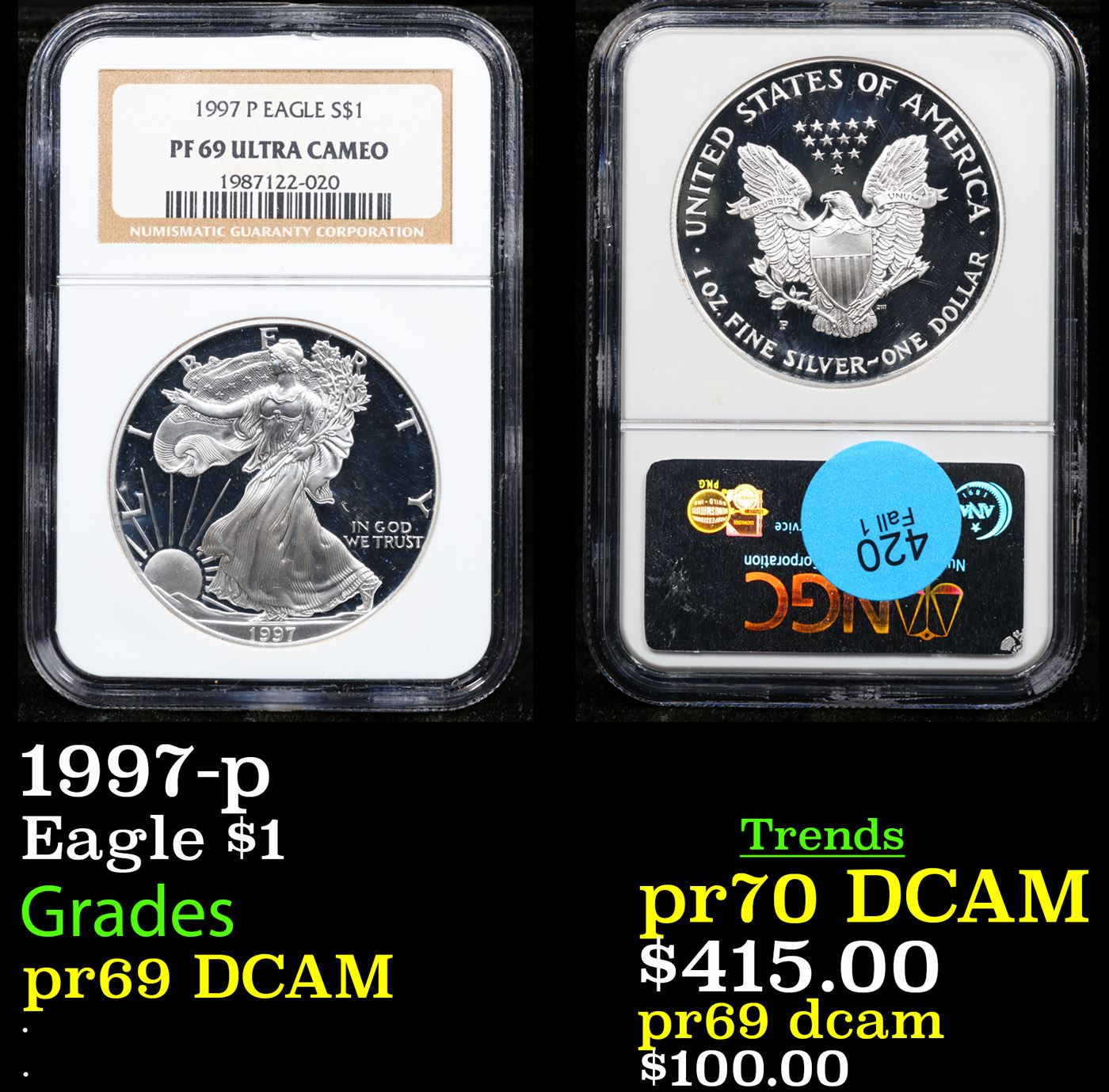 Proof NGC 1997-p Silver Eagle Dollar $1 Graded pr69 DCAM By NGC
