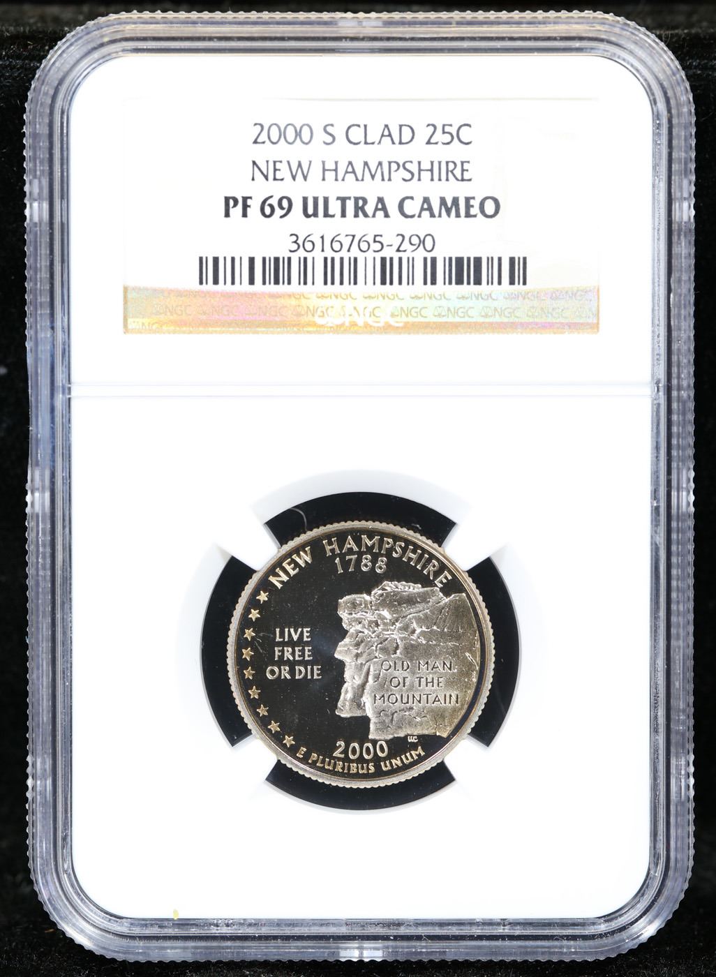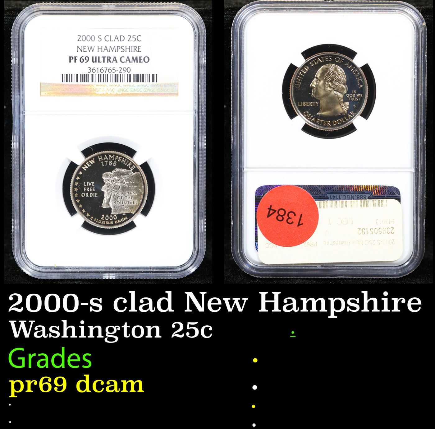 NGC 2000-s clad New Hampshire Washington Quarter 25c Graded pr69 dcam By NGC.