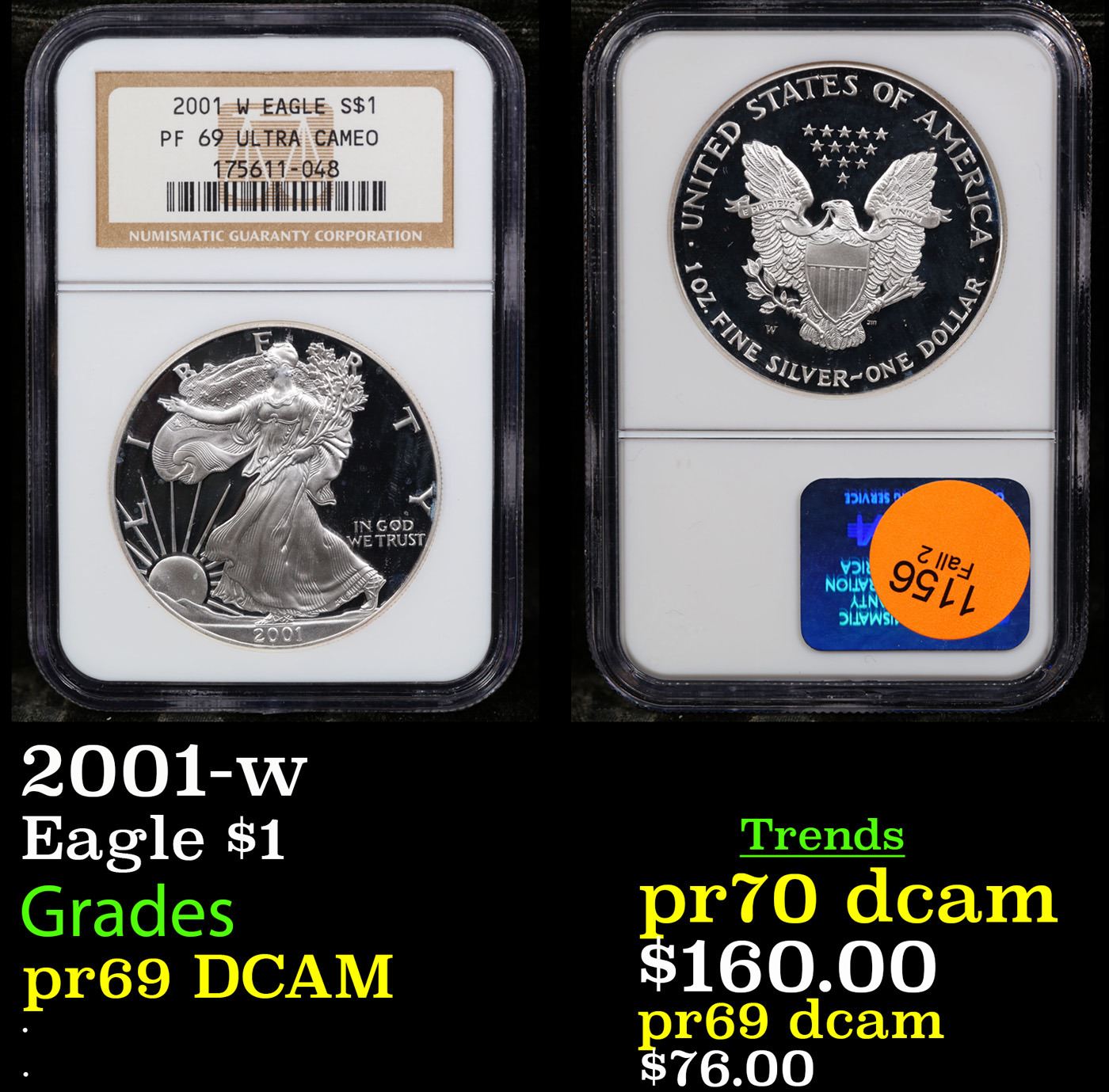 NGC 2001-w Silver Eagle Dollar $1 Graded pr69 DCAM By NGC.