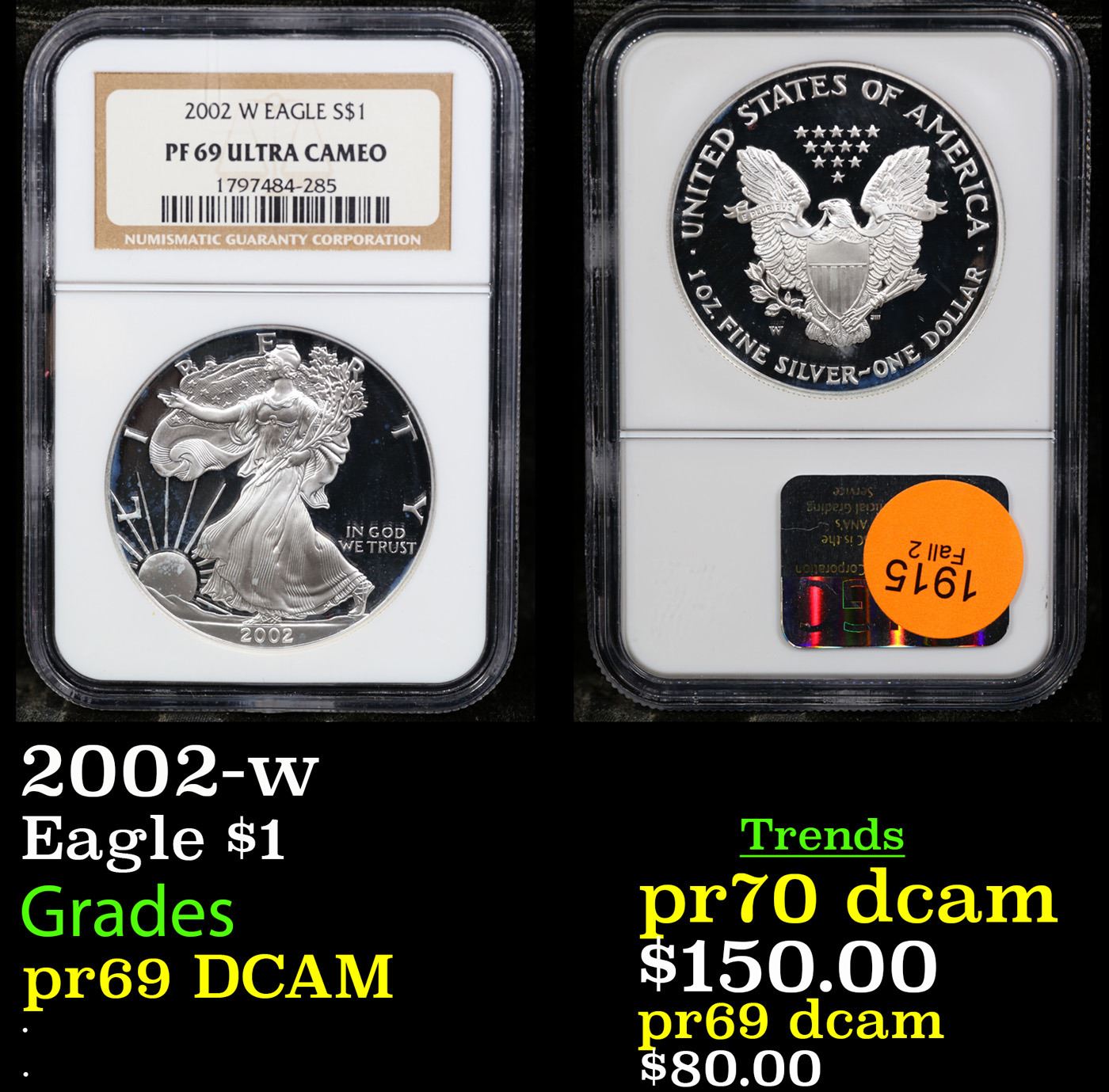 NGC 2002-w Silver Eagle Dollar $1 Graded pr69 DCAM By NGC.
