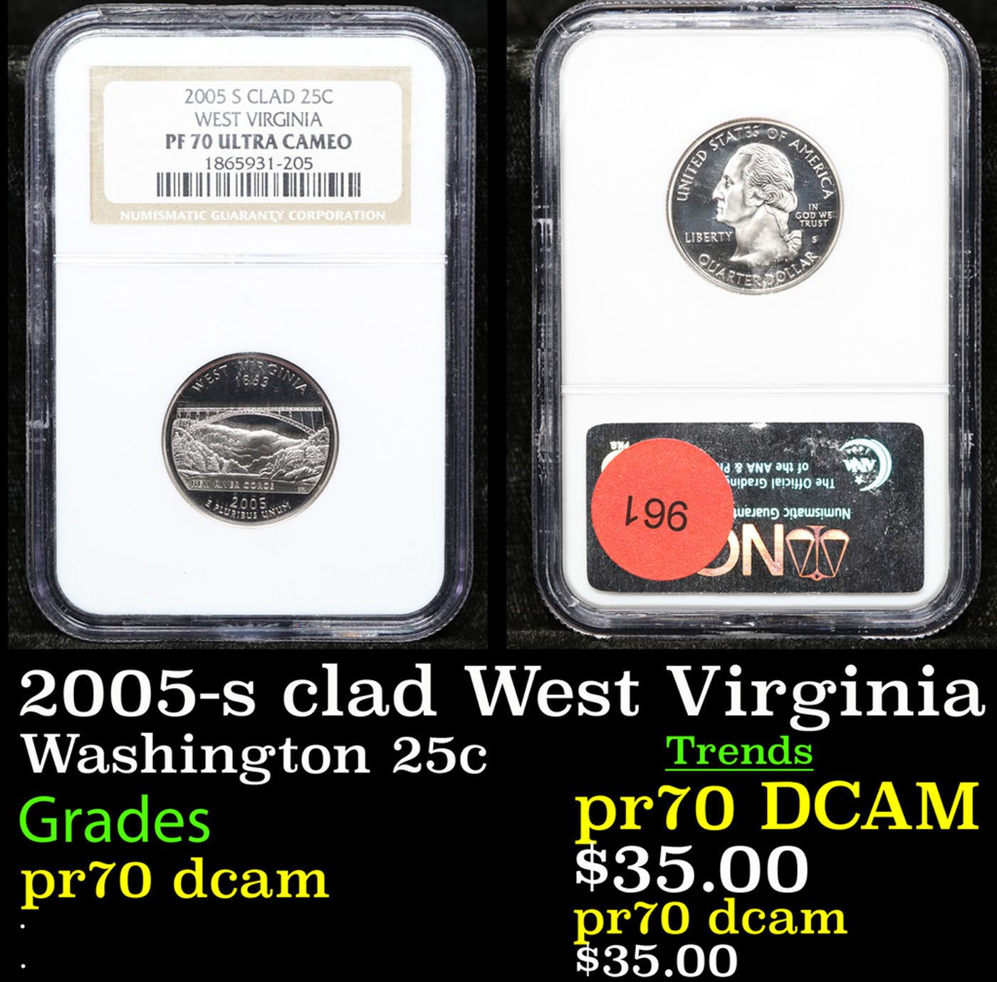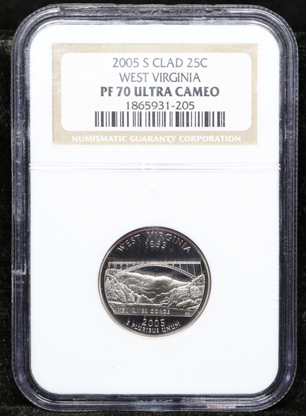 NGC 2005-s clad West Virginia Washington Quarter 25c Graded pr70 dcam By NGC.
