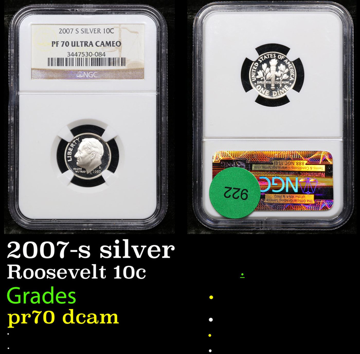 NGC 2007-s silver Roosevelt Dime 10c Graded pr70 dcam By NGC.