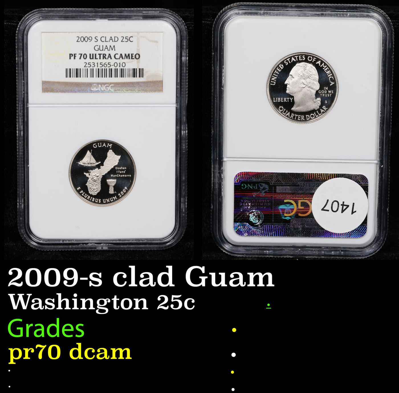 NGC 2009-s clad Guam Washington Quarter 25c Graded pr70 dcam By NGC.