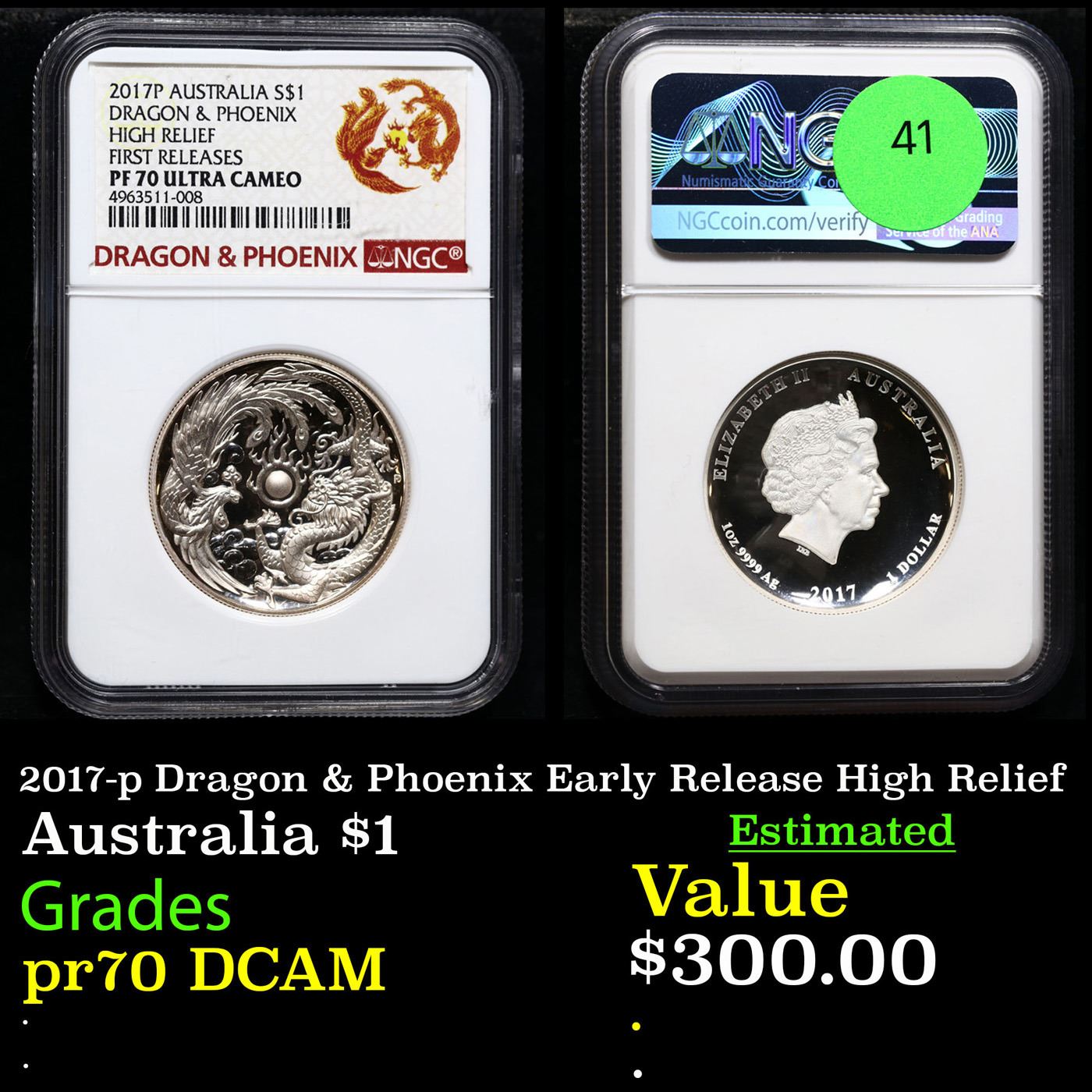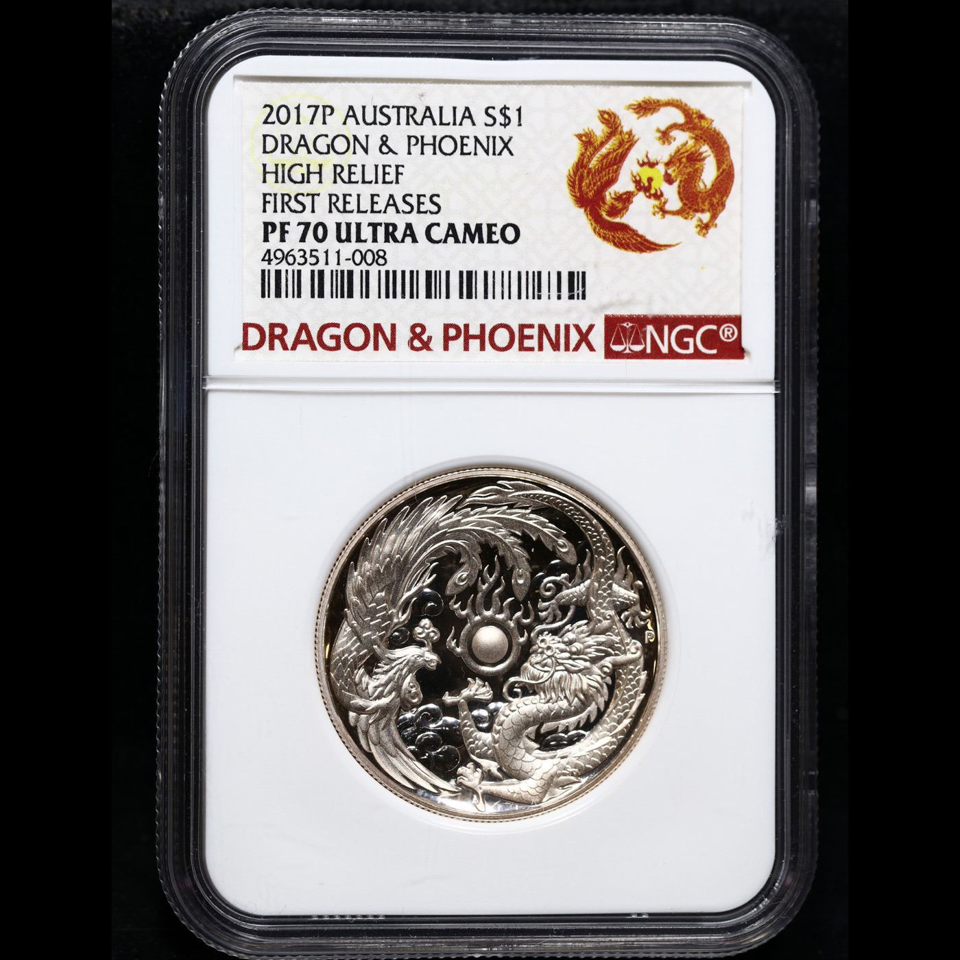 NGC 2017-p Dragon & Phoenix Early Release High Relief Australia Dollar $1 Graded pr70 DCAM BY NGC.