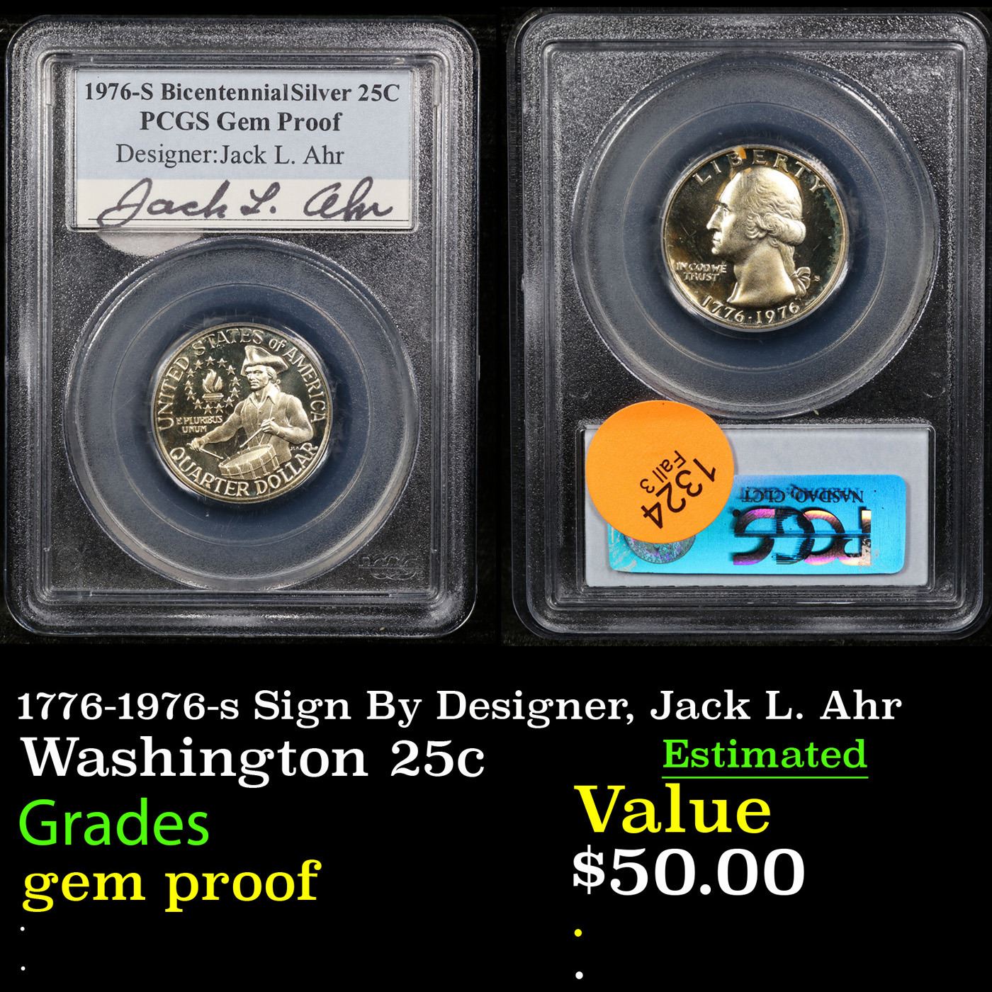 PCGS 1776-1976-s Sign By Designer, Jack L. Ahr Washington Quarter 25c Graded gem proof By PCGS.