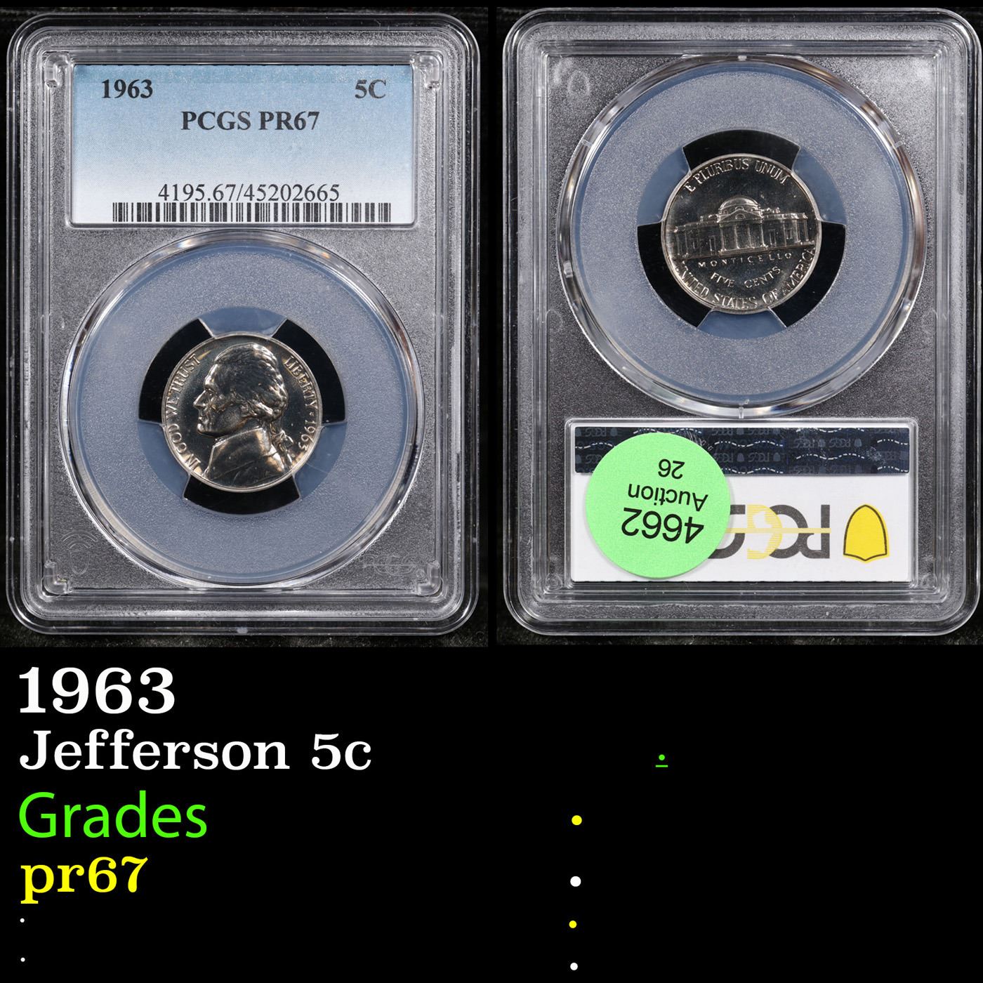 PCGS 1963 Jefferson Nickel 5c Graded pr67 By PCGS.