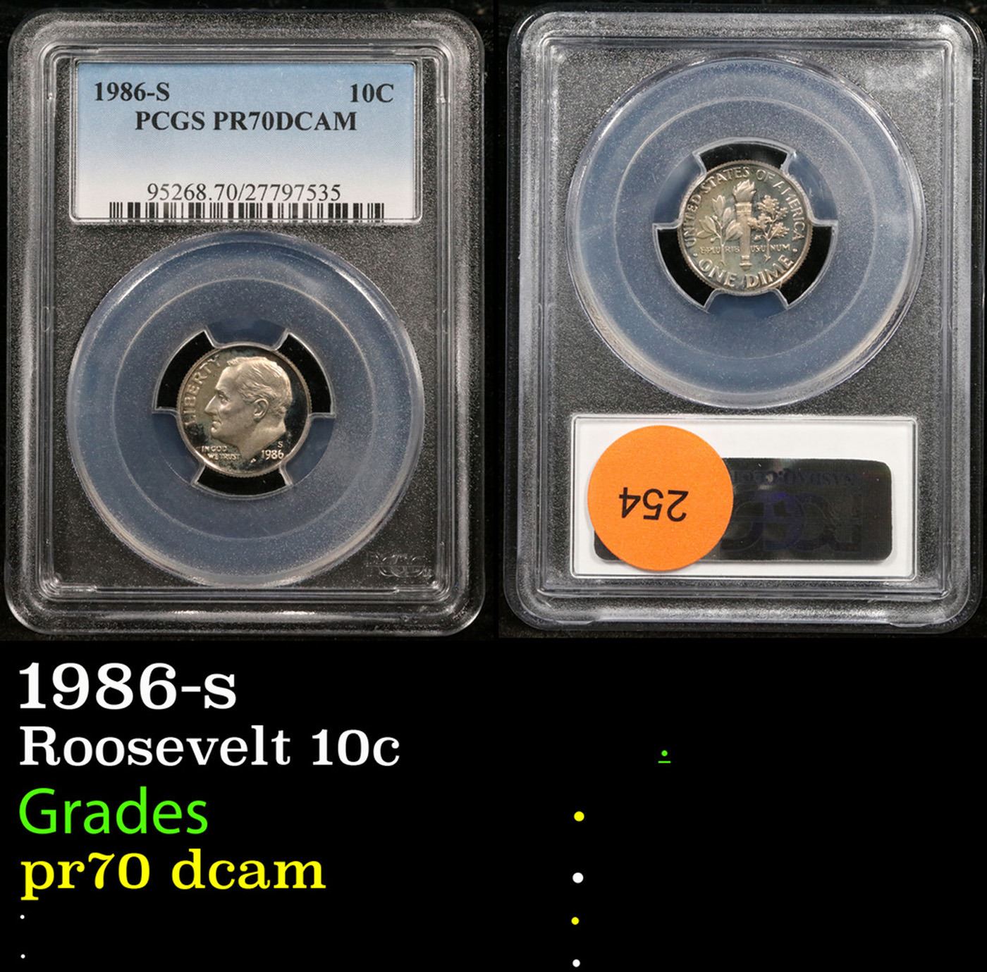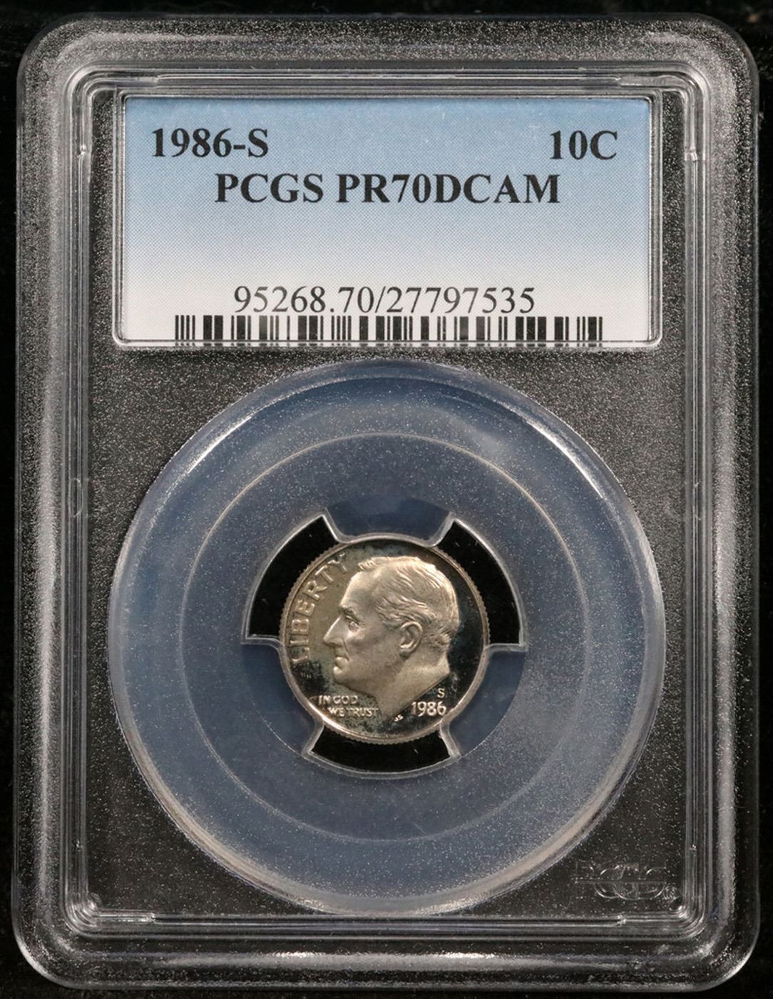 PCGS 1986-s Roosevelt Dime 10c Graded pr70 dcam By PCGS.