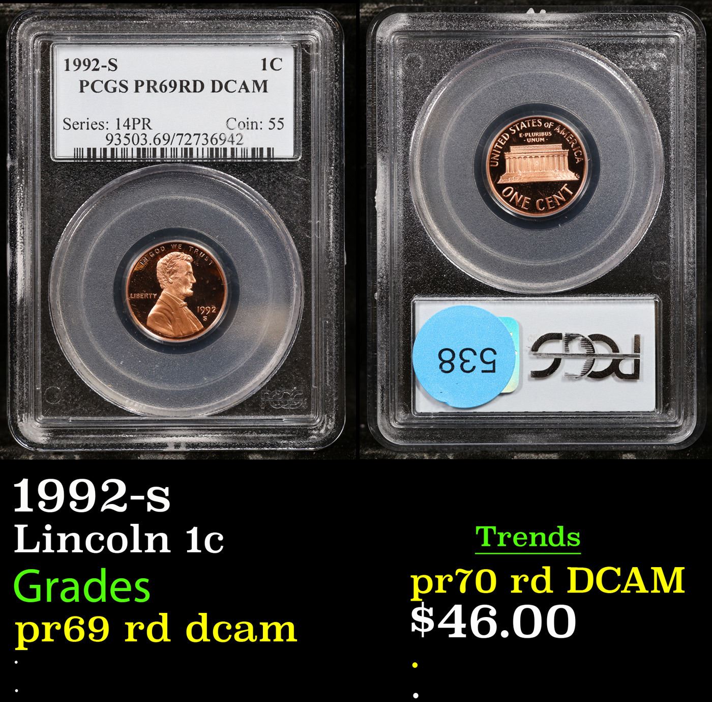PCGS 1992-s Lincoln Cent 1c Graded pr69 rd dcam By PCGS.