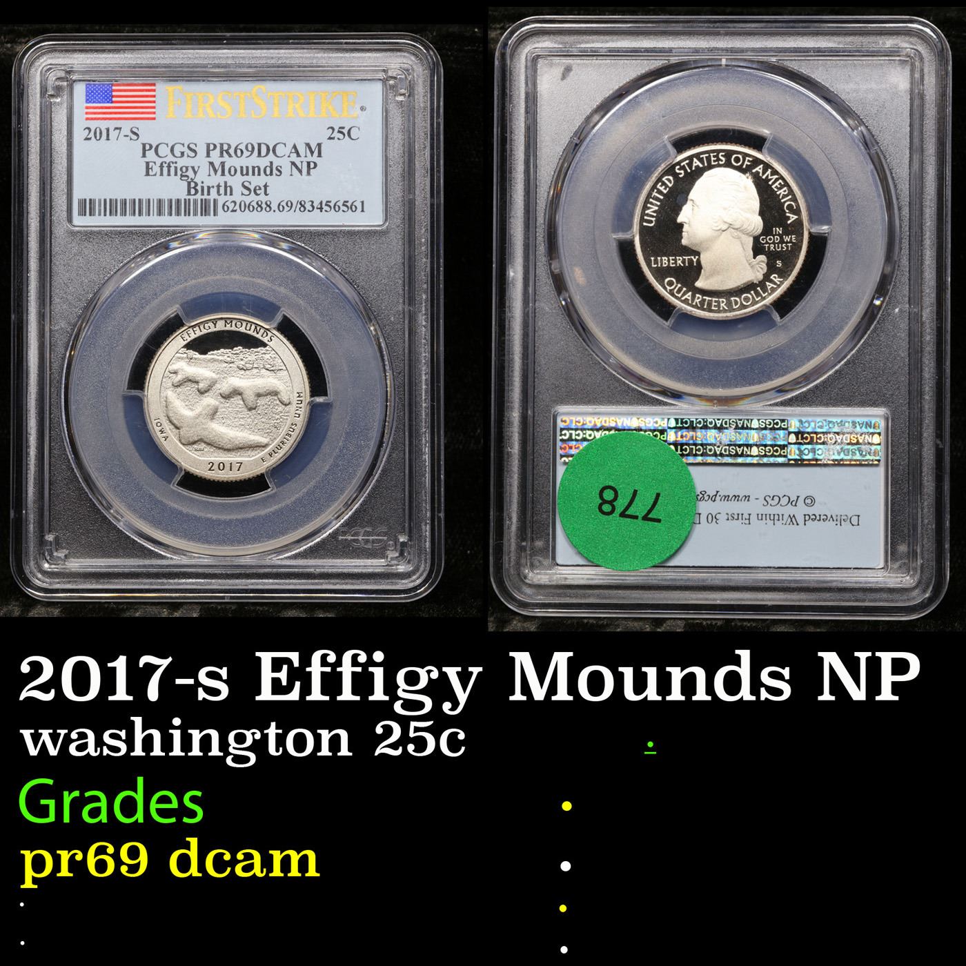PCGS 2017-s Effigy Mounds NP Washington Quarter 25c Graded pr69 dcam By PCGS.