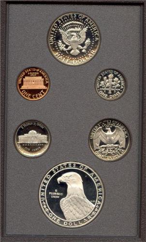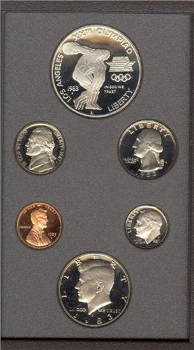 USA; Proof Set 1983S Prestige Set with Olympic Dollar in brown box of origin..