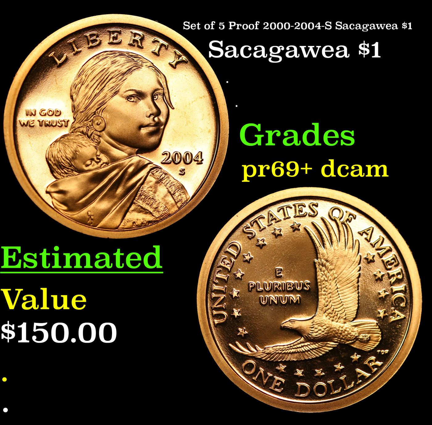 Proof Set of 5 Proof 2000-2004-S Sacagawea $1 Sacagawea Dollar $1 Grades GEM++ Proof Deep Cameo