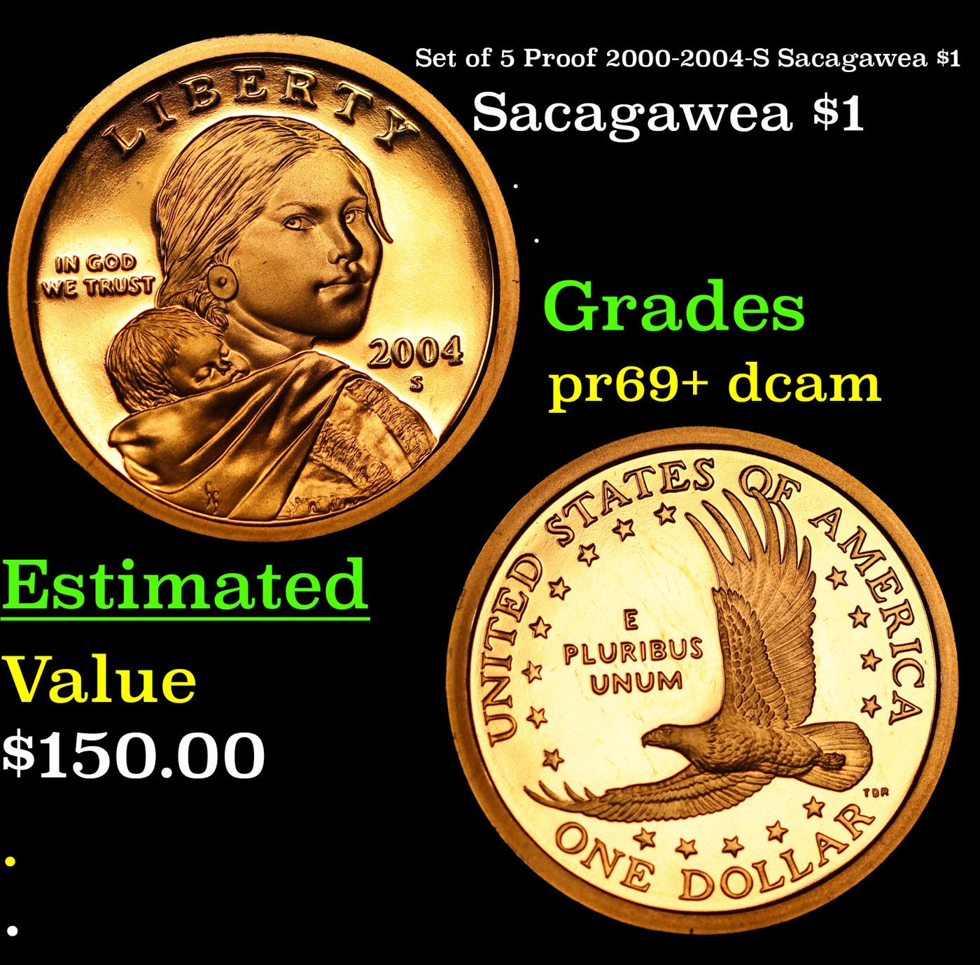 Proof Set of 5 Proof 2000-2004-S Sacagawea $1 Sacagawea Dollar $1 Grades GEM++ Proof Deep Cameo