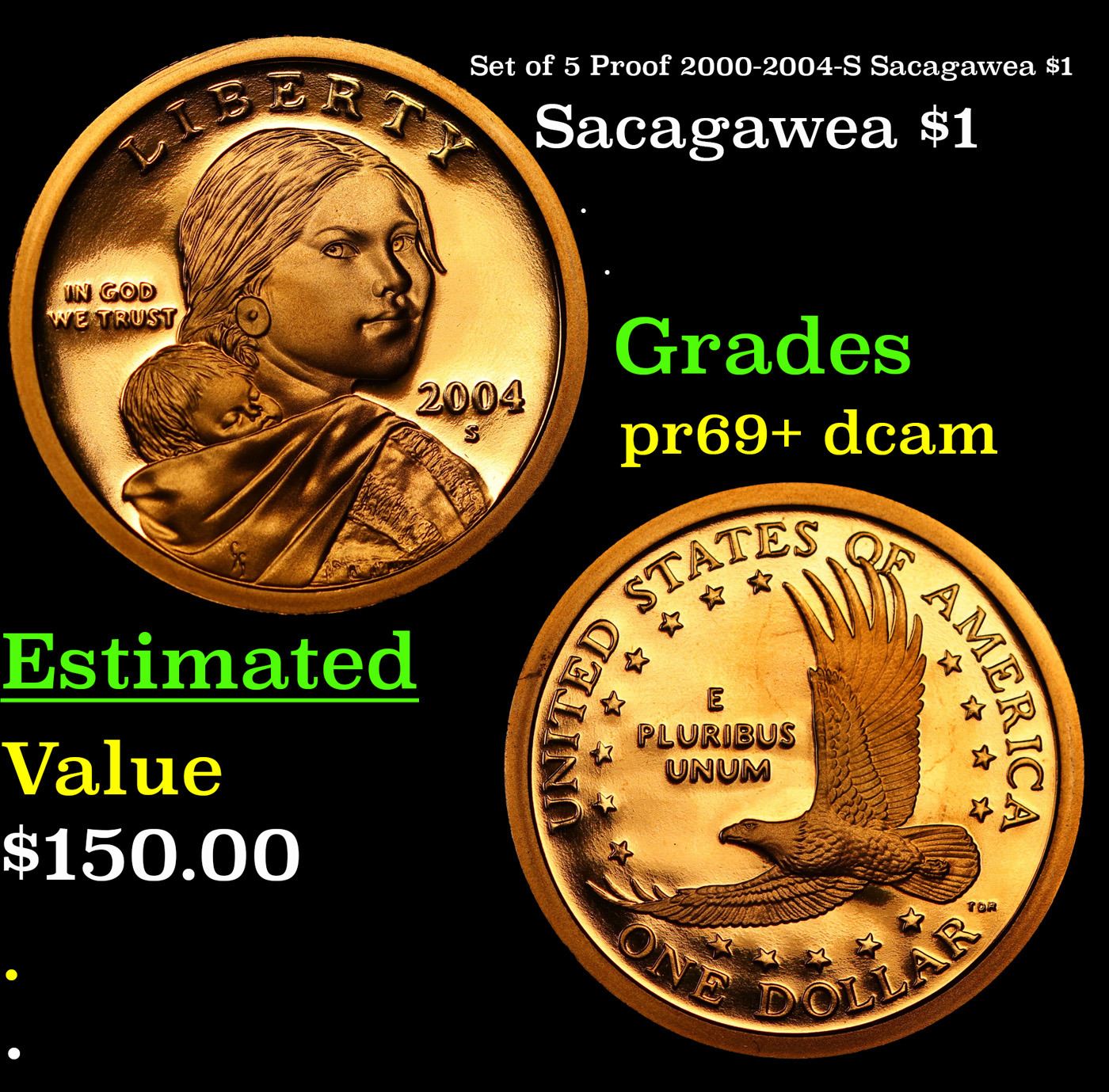 Proof Set of 5 Proof 2000-2004-S Sacagawea $1 Sacagawea Dollar $1 Grades GEM++ Proof Deep Cameo