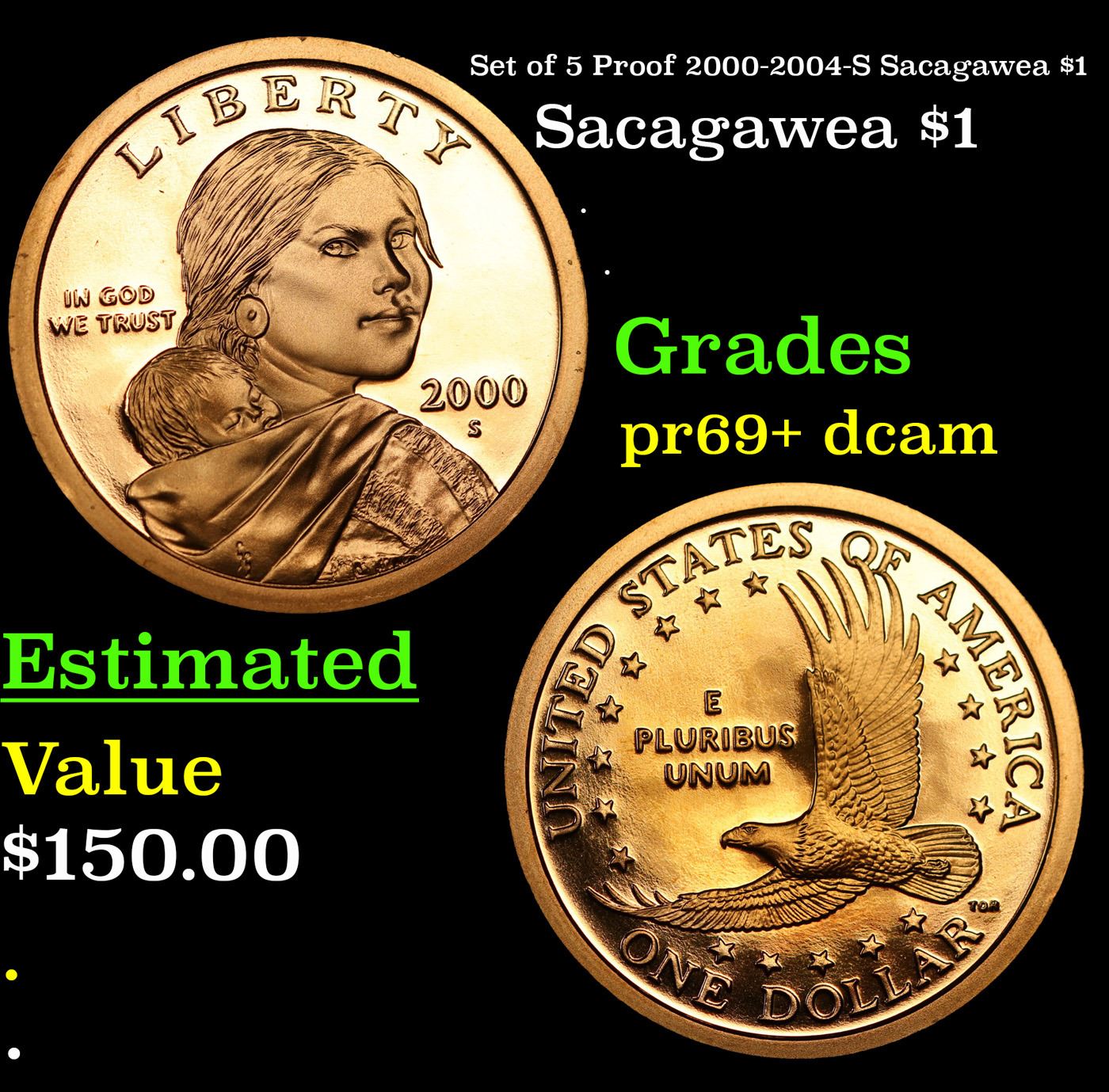 Proof Set of 5 Proof 2000-2004-S Sacagawea $1 Sacagawea Dollar $1 Grades GEM++ Proof Deep Cameo