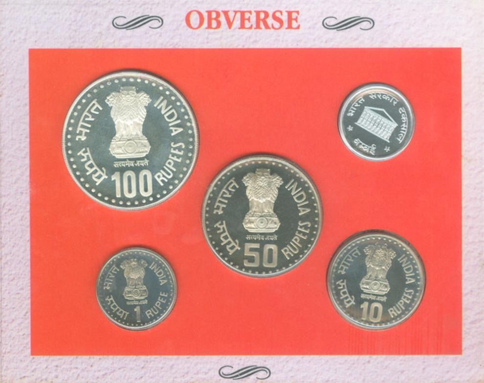 1992,Proof Set, Quit India Movement,100 Rupees, 50 Rupees, 10 Rupees and 1 Rupees,Bombay Mint, (RB # 160),intact in blister pack.