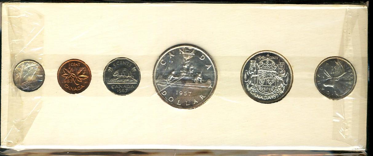 Proof-like set, 1957, original. Coins are brilliant with light cameos. The cent is full red and attractive